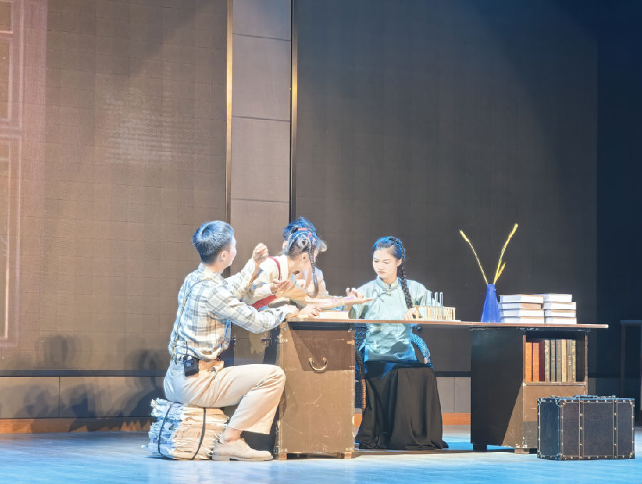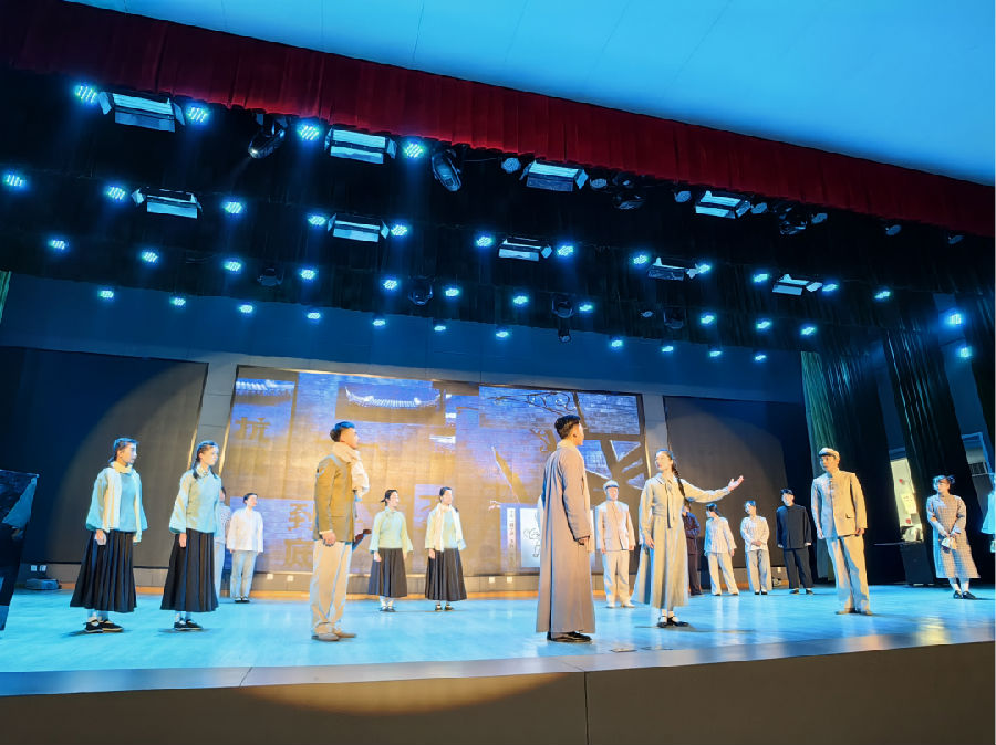 从前期宣传海报的张贴到入场券的发放,同学们对这部剧的热情早早被调动了起来,都无比期待这场美的熏陶。大幕拉开,同学们的目光聚焦在舞台上的演员与布景上,思绪被拉回到那个战火纷飞的年代。