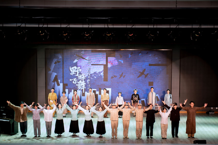 本剧讲述了抗战全面爆发时期,热血青年沈天路投奔黄橙子家庭,在两家人的培养下投身革命事业并为之献身的故事。随着情节发展,同学们多次爆发出雷鸣般的掌声。尤其当沈天路为国捐躯,将整部剧推向高潮之时,许多同学不禁潸然泪下。《野蜂飞舞》的乐曲声既是黄橙子对沈天路的怀念,更久久回荡在同学们耳边,这是一场无比生动的爱国主义教育。
