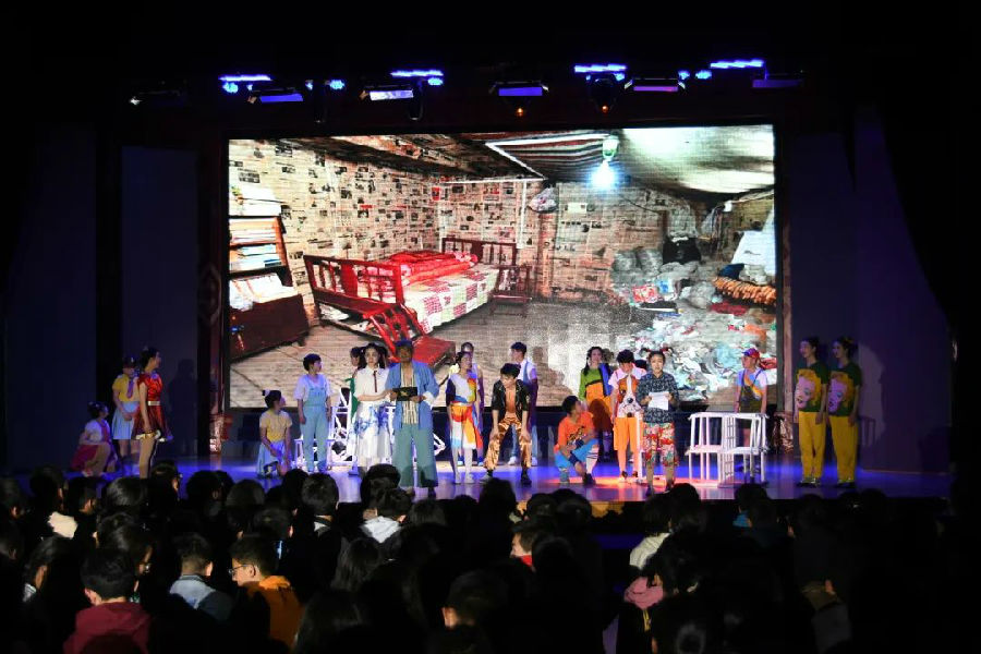 3月11日晚,江苏省常州市金坛华罗庚艺术团走进常藏,为学生们带来了一场大型现代音乐剧《田梦儿》。