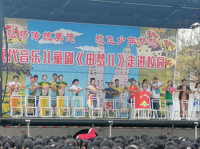 “让我们手把手牵,让我们心与心连……”3月20日上午10点,江苏省常州市金坛华罗庚艺术团带着曾荣获江苏省精神文明建设“五个一工程”奖的大型现代音乐剧——《田梦儿》走进安家中心小学,给孩子们带来了一场美轮美奂的视听盛宴。