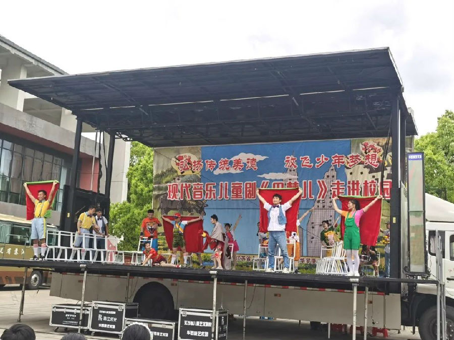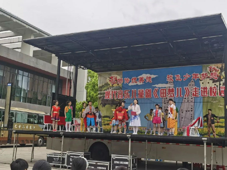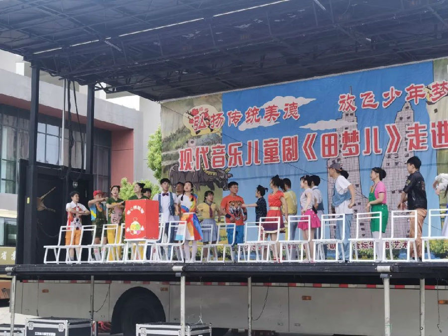 为了弘扬中华传统美德,放飞少年梦想,4月24日下午,江苏省常州市金坛华罗庚艺术团带着曾荣获江苏省精神文明建设“五个一工程”奖的大型现代音乐剧——《田梦儿》走进三井文体站,泰山小学五、六年级全体师生步行前往观看,享受了一场美轮美奂的视听盛宴。