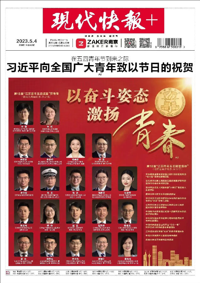 为充分发挥青年榜样的示范引领作用,团结引领全省广大团员青年踔厉奋发、砥砺奋进,共青团江苏省委、江苏省青年联合会决定,授予左超等21名同志第18届“江苏青年五四奖章”,授予中车南京浦镇车辆有限公司川藏铁路拉林线“复兴号”动车组研制团队等12个青年集体第18届“江苏青年五四奖章集体”,授予王伟等19名同志第18届“江苏青年五四奖章”提名奖。