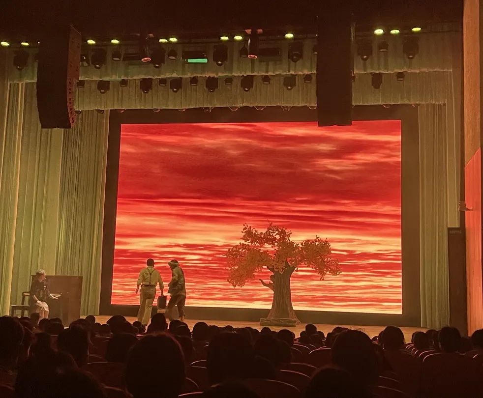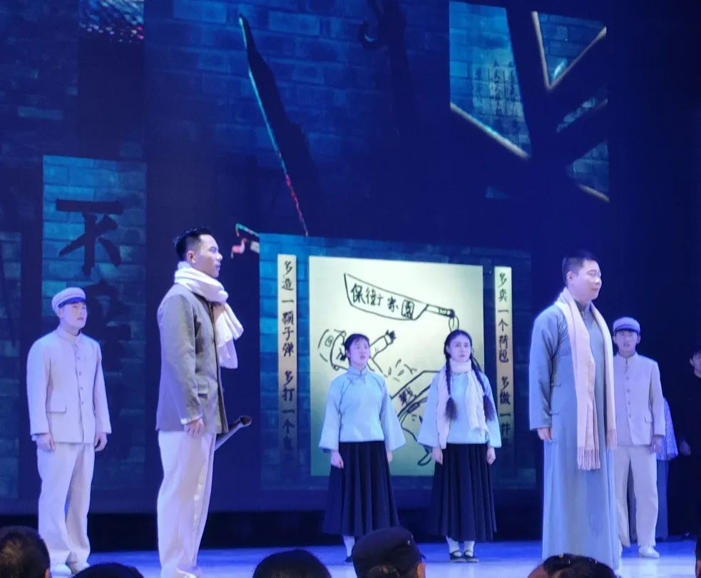 演出中,演员们精湛的演技、精美的舞台布局,深深的打动了同学们,他们仿佛置身于那战火纷飞的年代,与剧中人物同呼吸、共命运。从中,同学们寻觅到了阳光、乐观、自信、向上的情绪,体会到了人性的光辉和人情的伟大。