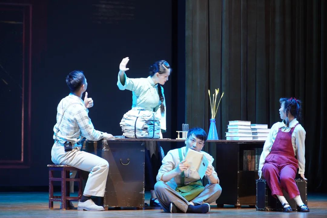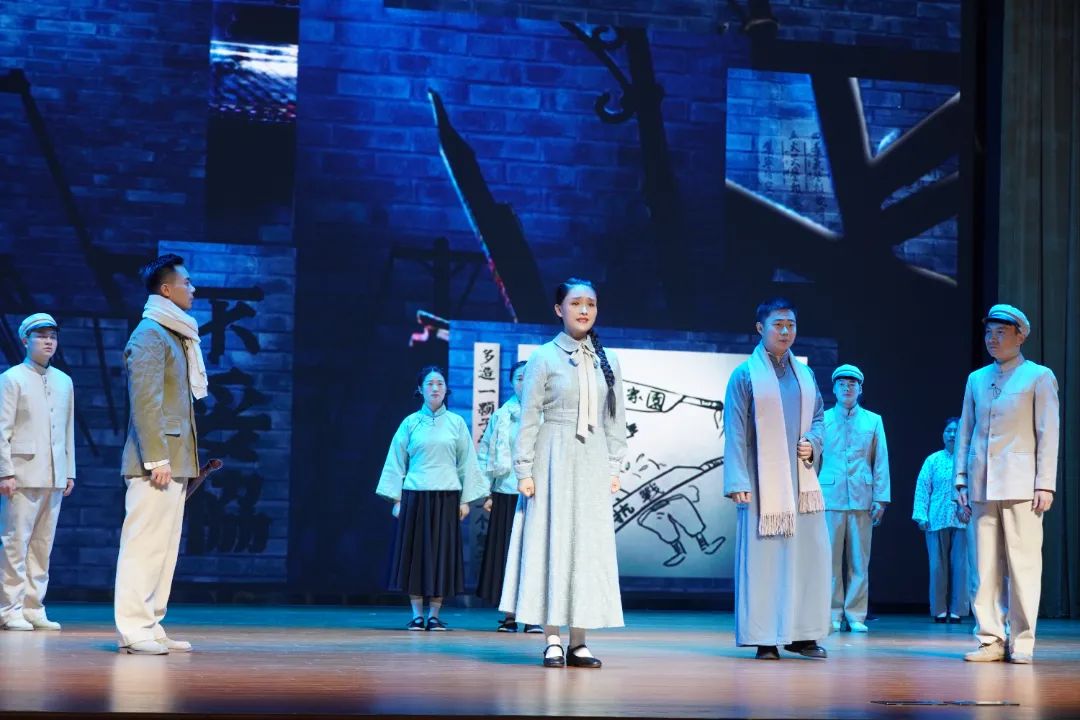 姐姐与母亲告别时母亲依依不舍的身影诉说着爱儿之情,但最终,她还是挥了挥手,支持者女儿的志向。通过“我”的回忆,我们看到了爱国青年在国与家间的毅然抉择,看到了青年前赴后继的身影。这样一部真情实感的话剧,让人热泪盈眶,感谢演员们对此的生动演绎!