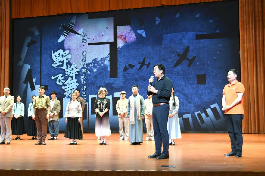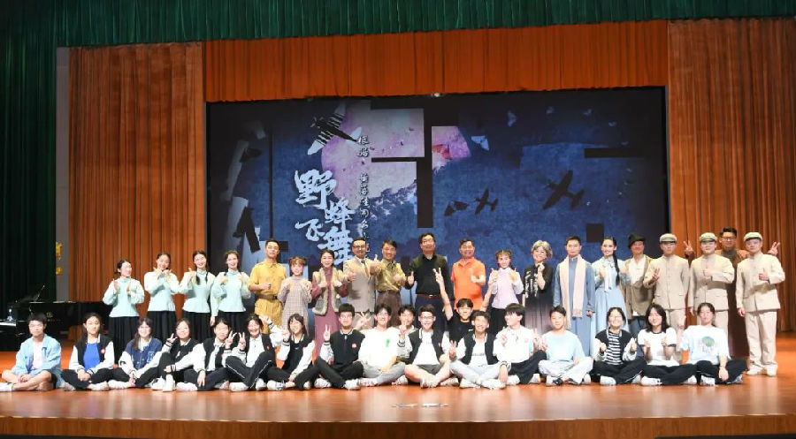 6月6日下午,江苏省儿童艺术剧院(金坛华罗庚艺术团)走进我校大剧场,为我校全体师生带来了一场精神盛宴——首部讲述抗日战争时期“华西坝”历史的青春剧《野蜂飞舞》。激昂的台词和音乐牵动每一位观众的心,让我校同学与主演们同呼吸、共命运,感受到一颗颗赤诚之心,感知到在那个年代青少年的青春、热血、理想和憧憬。