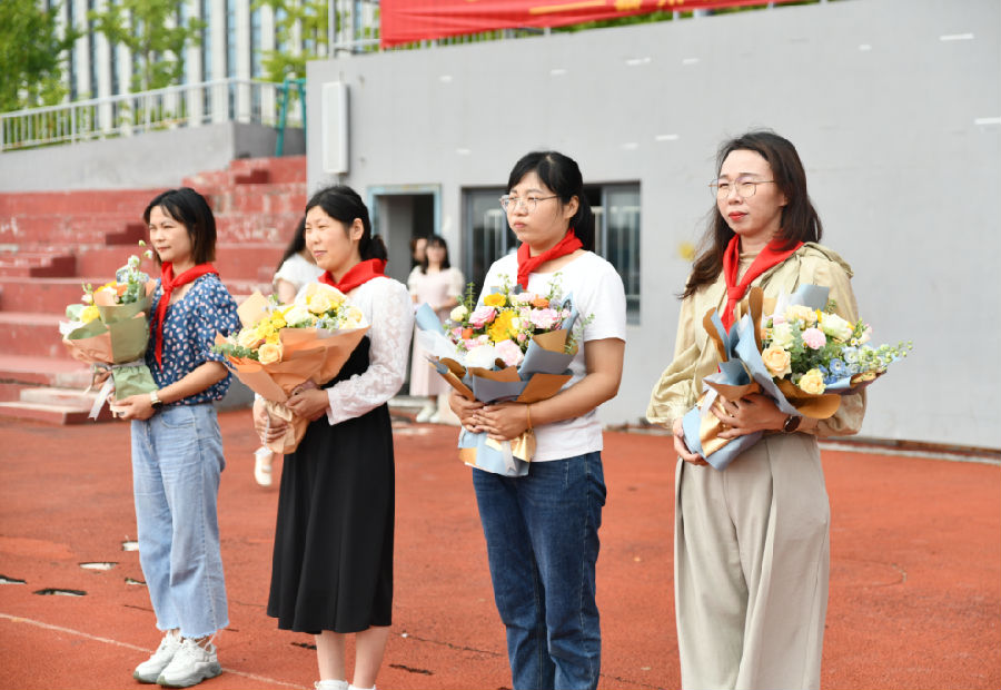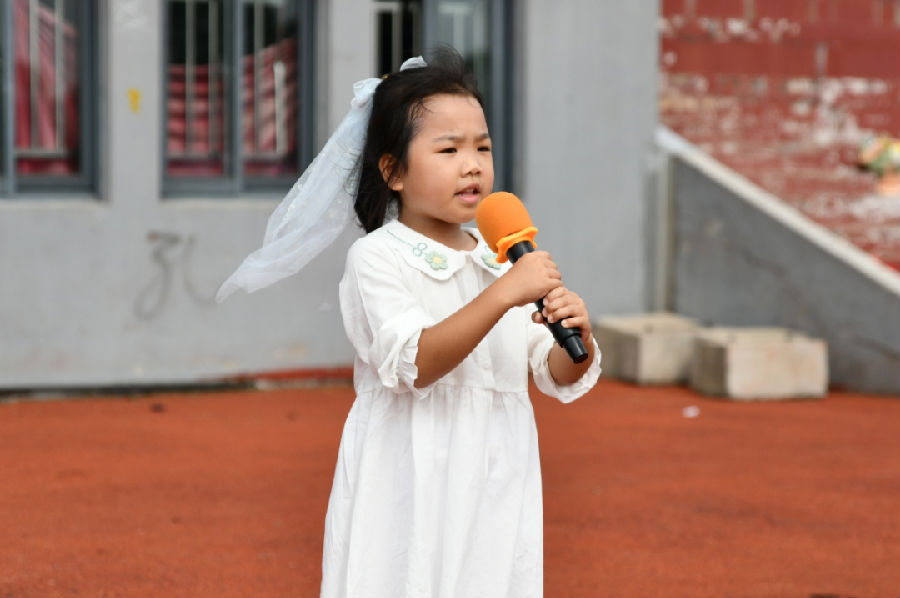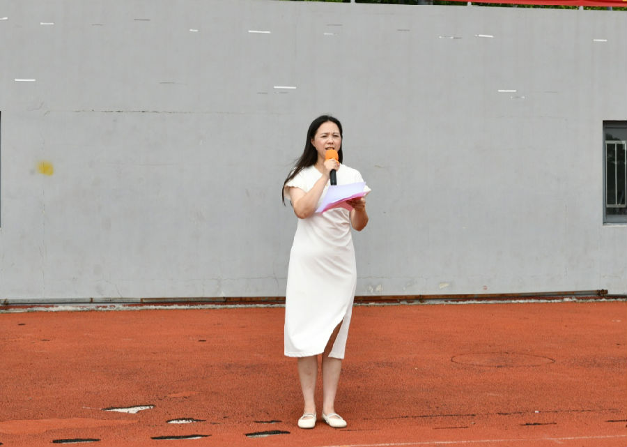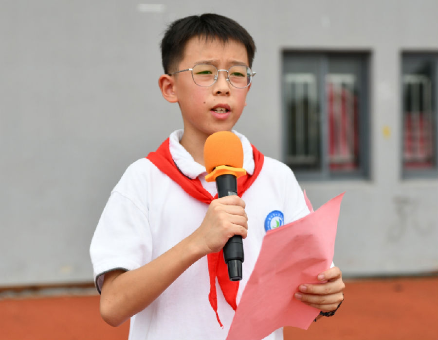 学生代表六(4)班程顺哲向全体学生发出新学期的倡议,望大家不畏涉滩之险、不惧爬坡之艰、不怕闯关之难,仰望星空,脚踏实地,奔赴山海,不负韶华,以优异的成绩来回报老师和家长的期望。