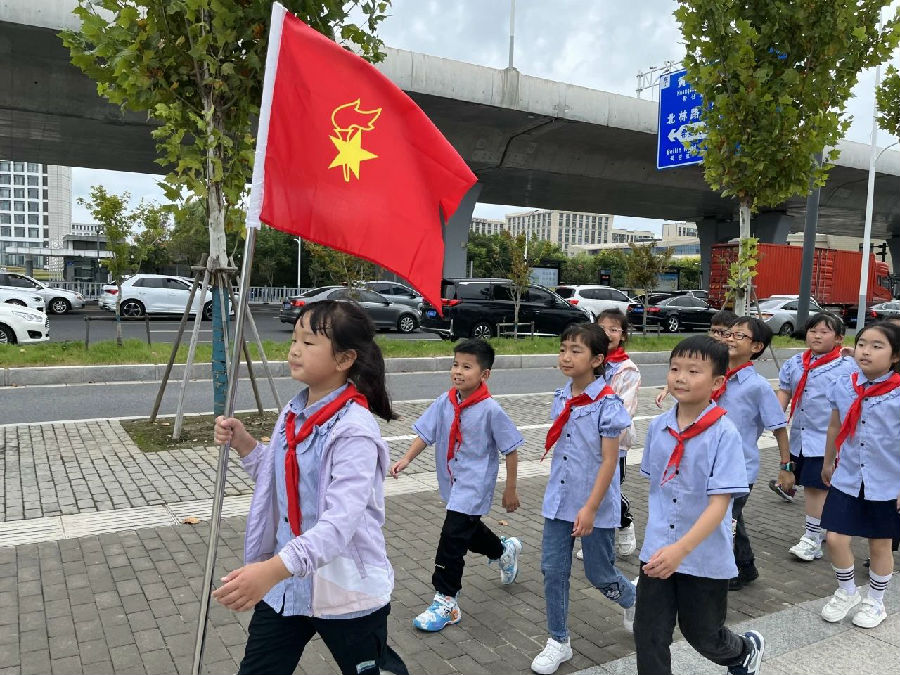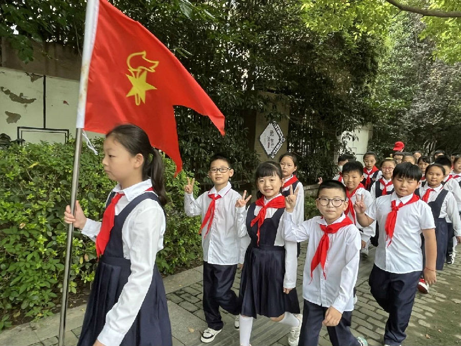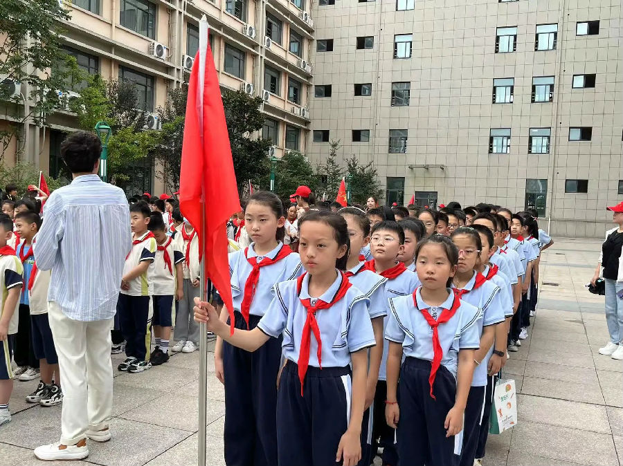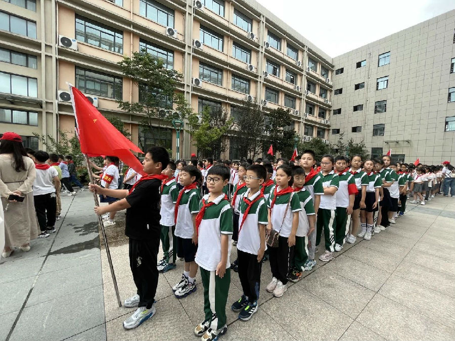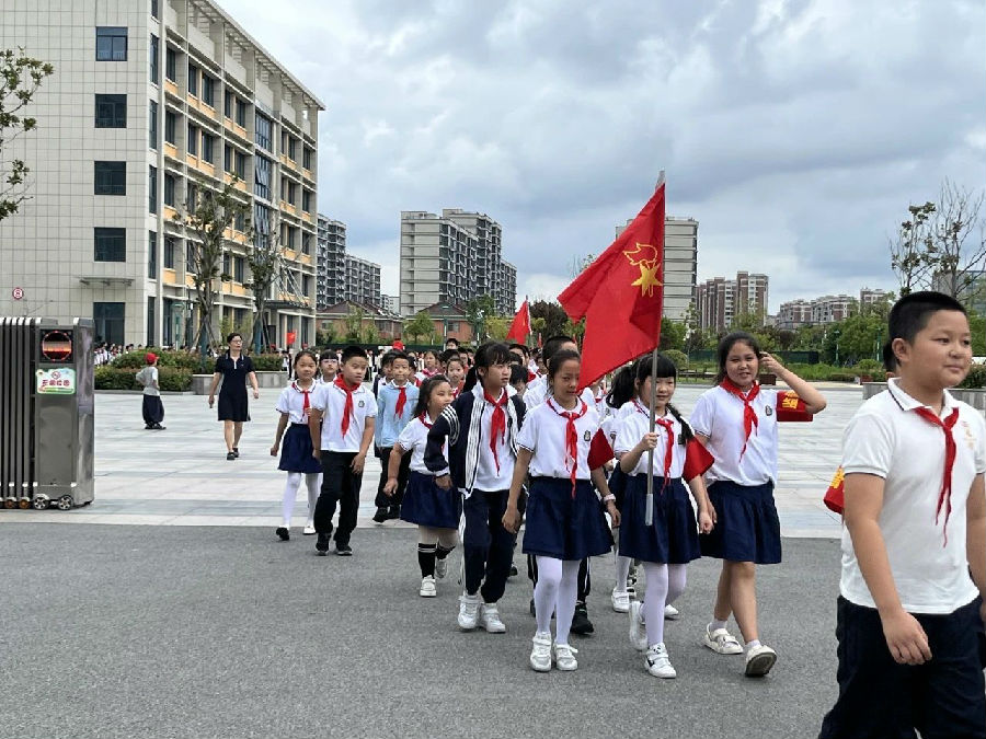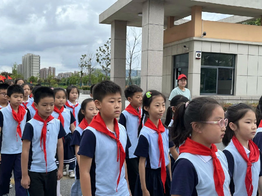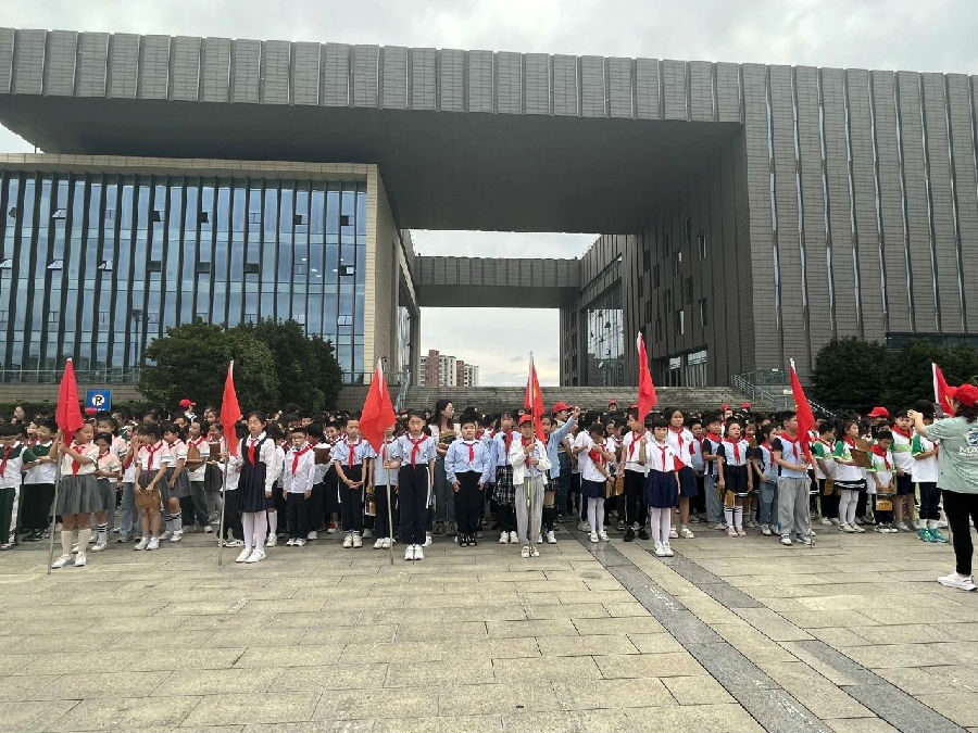 风摇桂花,层林渐染。瞧!鲜艳的红领巾飘扬,同学们已集结完毕,整装待发!