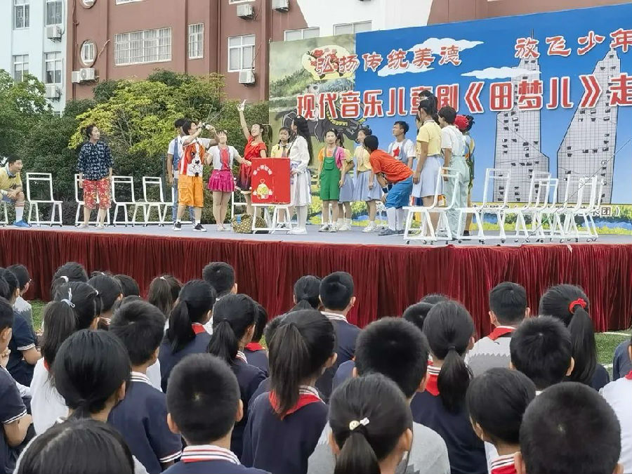 为了弘扬中华传统美德,放飞少年梦想,10月11日上午,江苏省常州市金坛华罗庚艺术团带着曾荣获江苏省精神文明建设“五个一工程”奖的大型现代音乐剧——《田梦儿》走进新城小学,全体师生齐聚操场观看了这一剧目,享受了这场饱含浓浓正能量的视听盛宴。