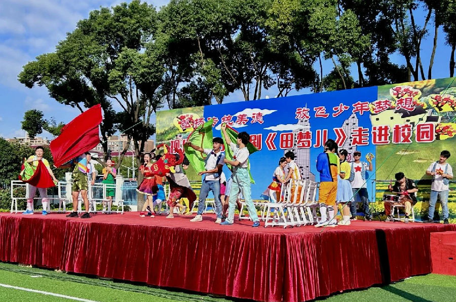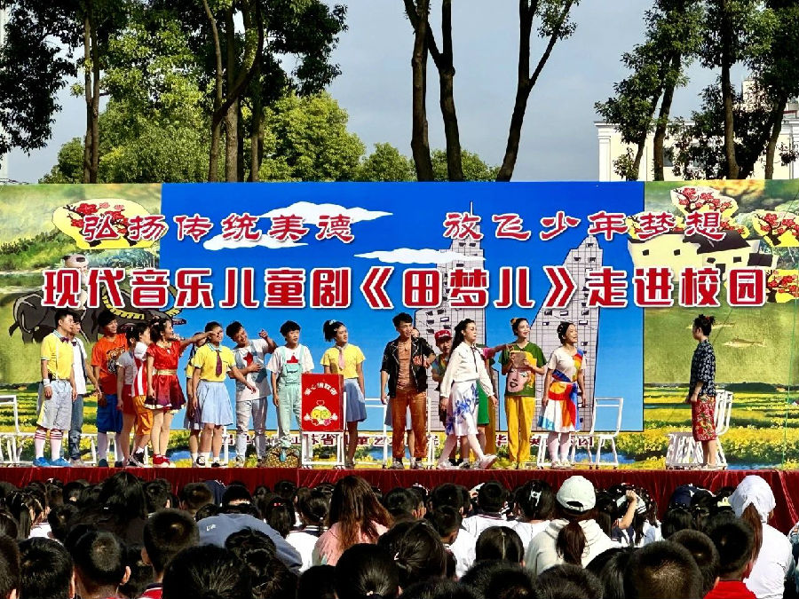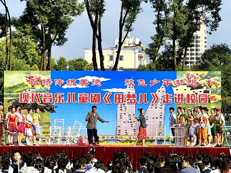 今天,我们兴致勃勃地在操场上观看了音乐儿童剧——《田梦儿》。它讲述了路边弃儿田梦长到12岁时,跟随捡破烂的爷爷进城求学的成长经历。全剧在不断的矛盾冲突中,展现了城乡孩子从理解到融入过程的纯美情感。