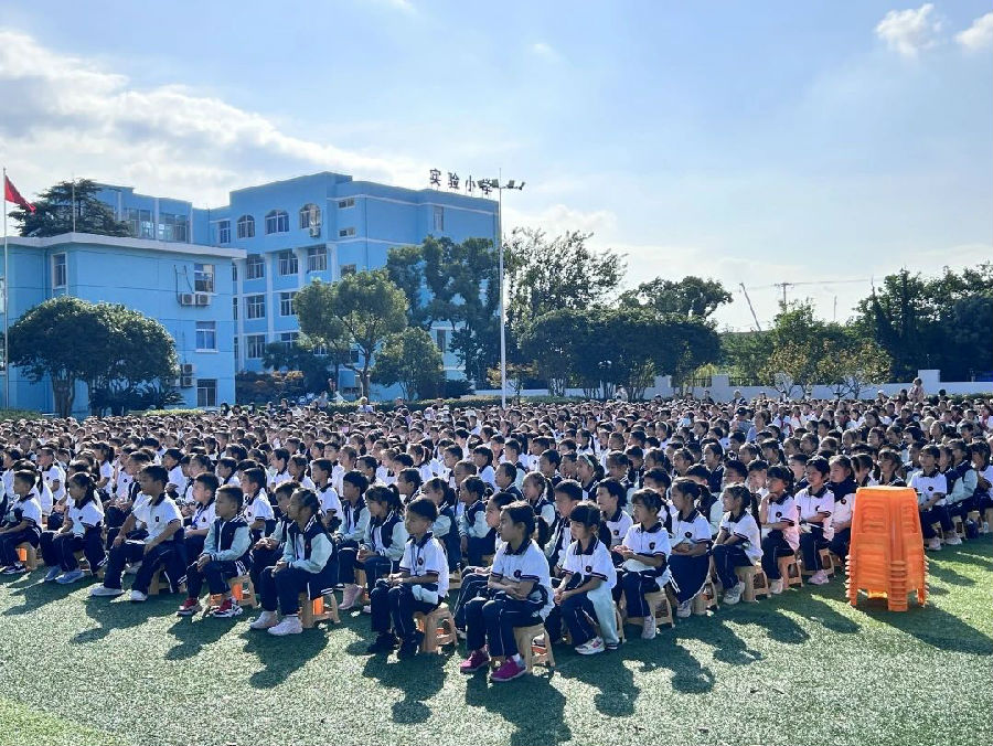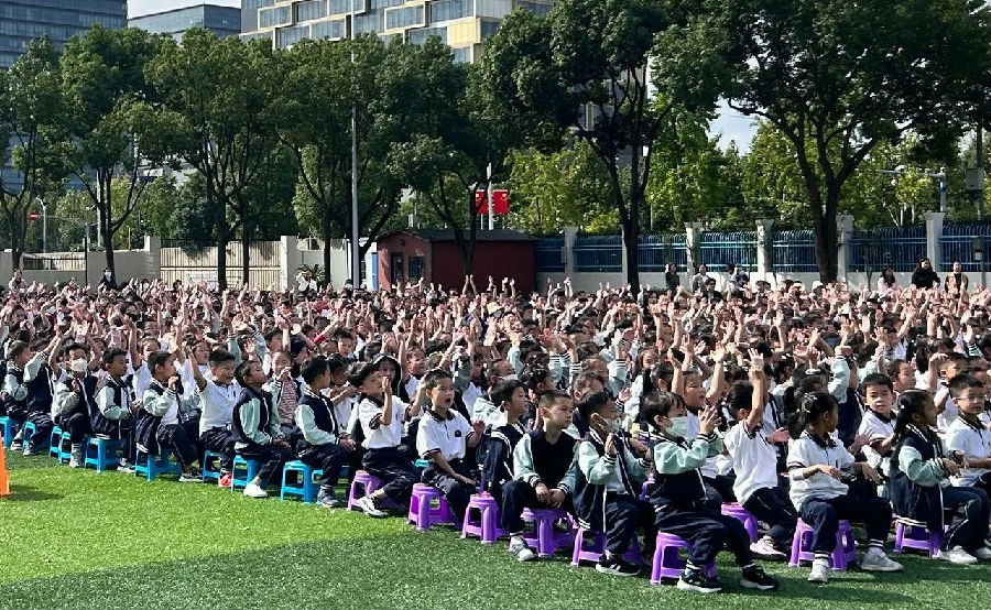10月11日上午,浦东新区实验小学全校师生观摩大型现代音乐儿童剧《田梦儿》。
