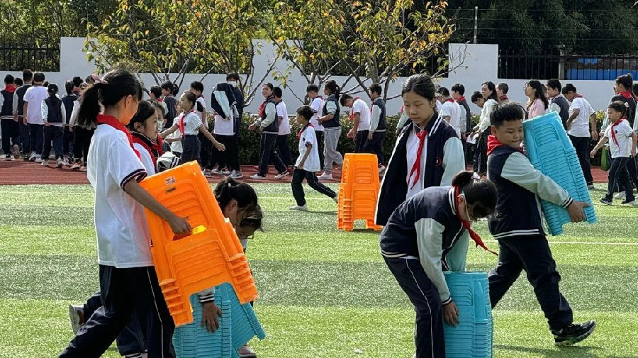 活动结束后,同学们被田梦儿那份对生活的热爱和乐于帮助他人的精神深深触动。高年级的部分同学自发地留下帮助后勤叔叔阿姨们一起搬运、整理凳子。