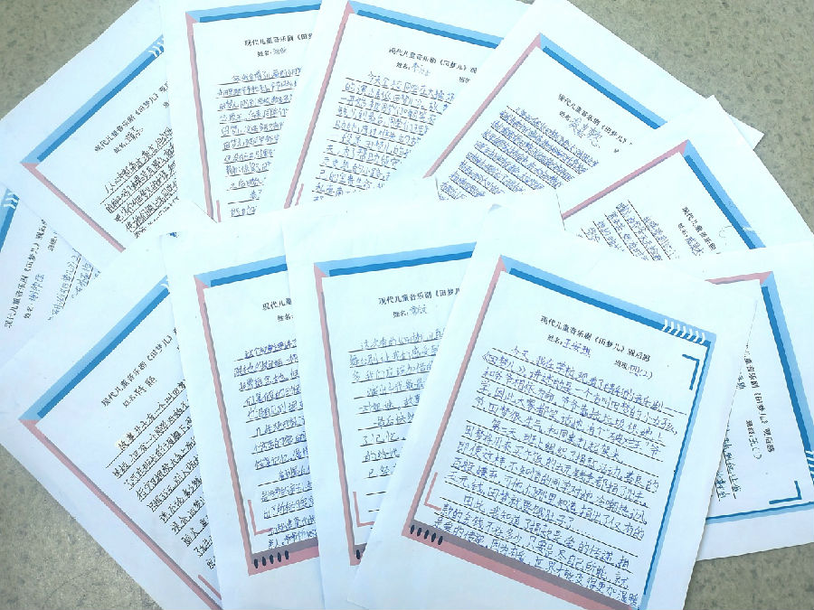 《田梦儿》的演员们太厉害了,让我觉得不是在看音乐剧,就像自己也在故事里。音乐剧里的歌也很好听,其中有一句“把我的爷爷,当成你的爷爷。”听到这,我恍然大悟,大家都想帮助田梦儿。表演快结束时,我们全场互动,齐唱主题曲。表演结束后我还想去班长那儿要签名!真想让她教教我怎么演得这么棒!