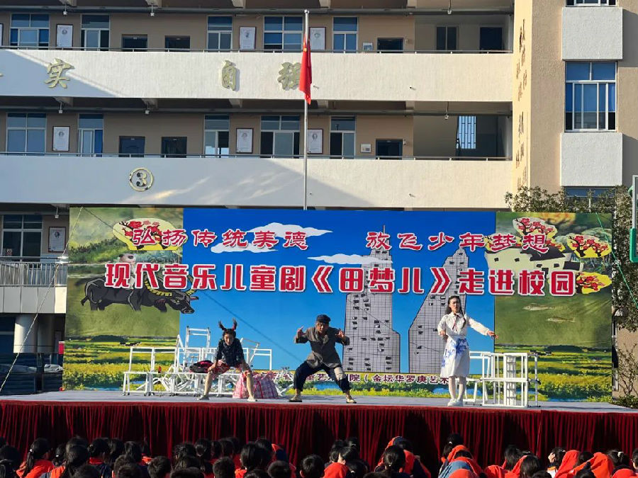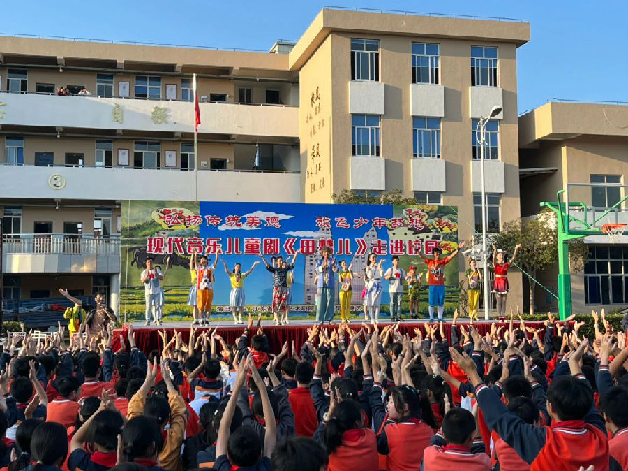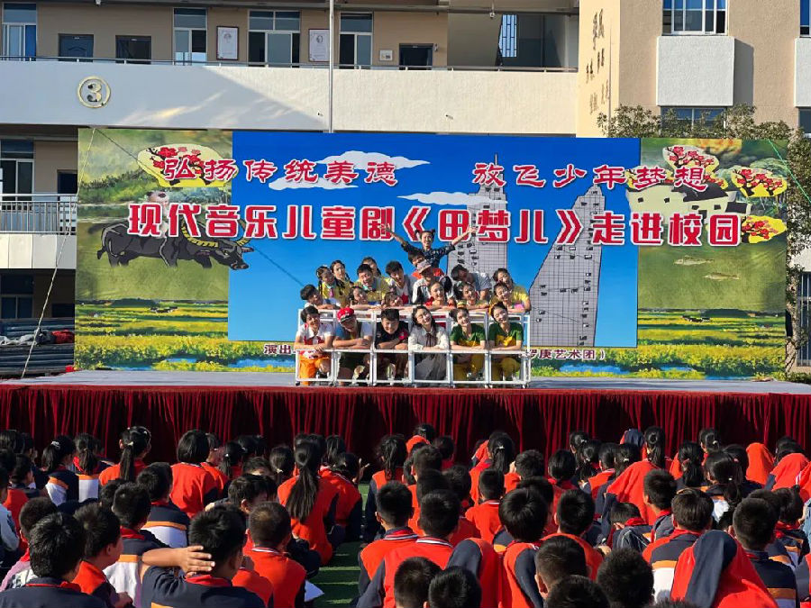 一对相依为命的爷孙,一句传承千年的古训,一群不谙世事的少年,一个共同追求的梦想,带给我们对友情亲情、对成才成人、对中国梦的诸多思考……10月11日下午,大型现代音乐剧——《田梦儿》在上海市蔡路中学展演,为全体师生带来了一场视听盛宴。