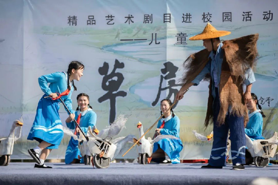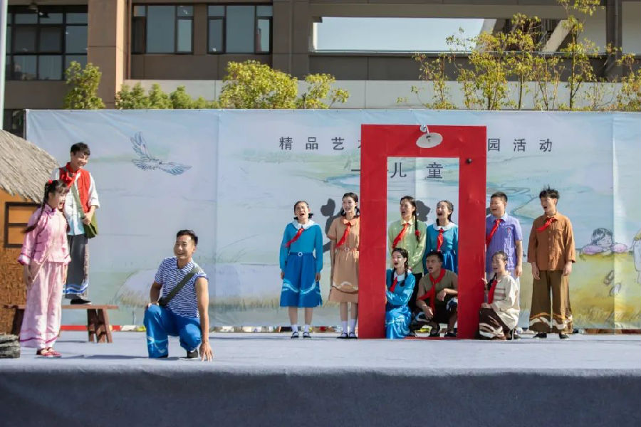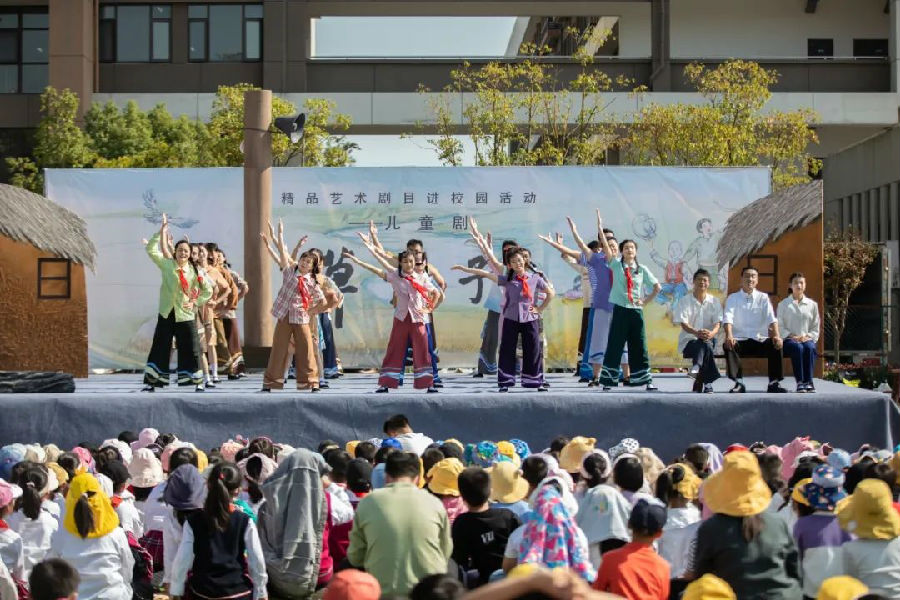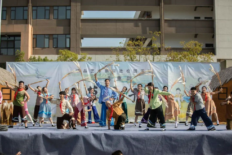 为丰富青少年儿童校园文化生活,让学生领略儿童戏剧艺术的魅力,2023年10月31日中午,儿童剧《草房子》剧组走进运盐河小学。运盐河小学全体师生不仅享受了一场视觉盛宴,也零距离领略了儿童剧的魅力。
