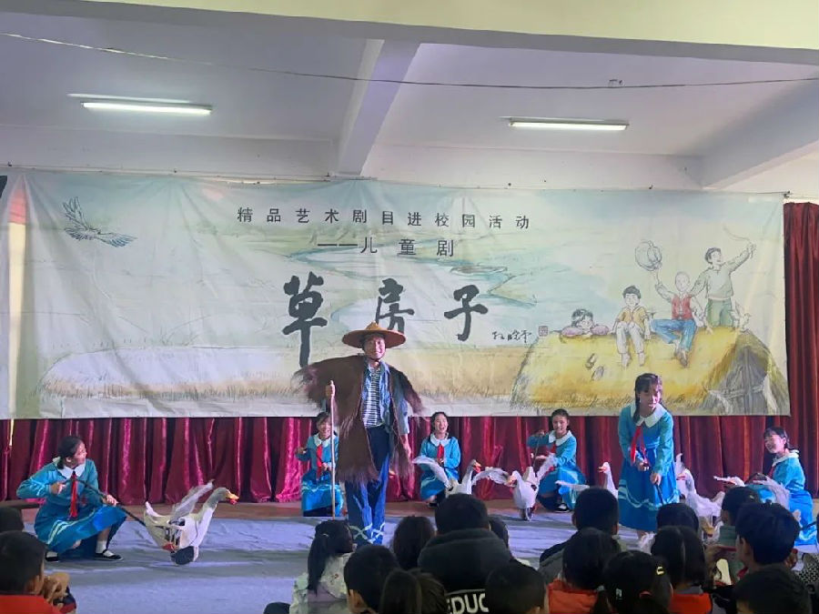 “草房子故事多,有你也有我。从日出到日落,我们一起走过;草房子故事多,你是否还记得门前那条小河,你是否还记得一起唱过的歌。”11月10日上午,伴随着优美的童声主题曲,由南通·通州“童声里的中国”少儿艺术创研活动基地、江苏省儿童艺术剧院联合出品的儿童剧《草房子》走进通州区唐洪小学,为学生们带来一场视觉盛宴。
