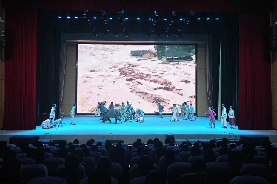 “哥哥你光脚冷不冷……”舞台上,感动人的“泪点”伴随着情节一幕幕展开,一次次击中人心。“就算遇到天大的灾难,我们也要挺直腰杆活下去!”当奶奶说完这句话时,孩子们用他们热烈的掌声表达着自己对这部儿童剧的喜欢。