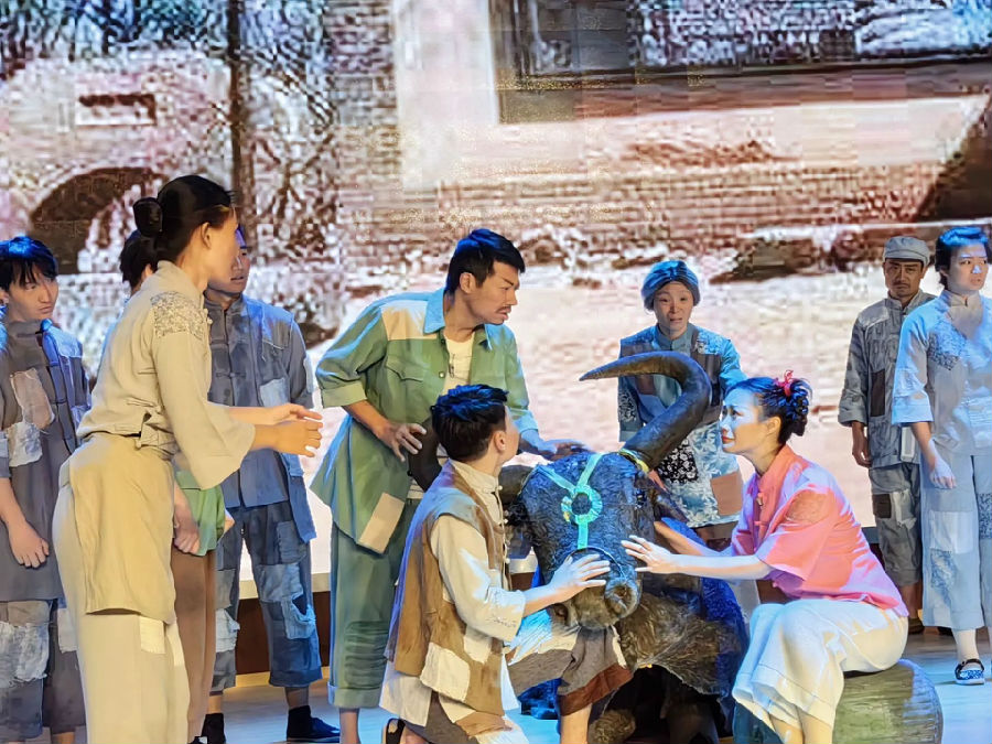 话剧《青铜葵花》改编自曹文轩的儿童文学作品,两个农村少年——男孩“青铜”和女孩“葵花”,历经苦难依然乐观而坚韧地生存。纯净唯美,意境高雅的语言下,呈现的是主人公美好强大的心灵内核。舞台上,演员们用精湛的表演技艺和真挚的情感,生动演绎作品,学生们无不在剧情中沉浸。他们热泪盈眶,感受着故事所传递的勇气、坚持和正直的力量。