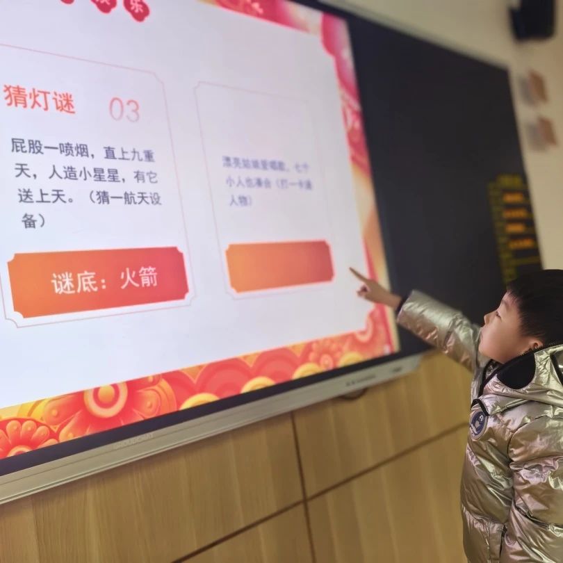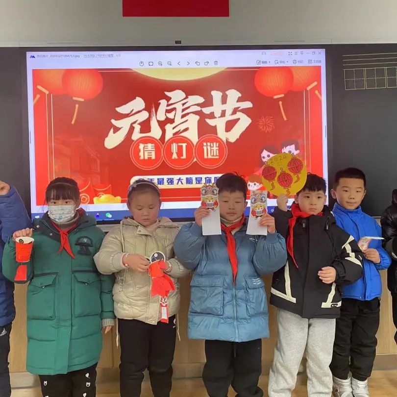 校园内,花灯琳琅满目,色彩斑斓,有红的、粉的、黄的……好一幅热闹、祥和的节日景象!五光十色的花灯下,一条条有趣的灯谜等待着学生们去揭晓。“来看这条灯谜:高高个儿一身青,金黄圆脸喜盈盈,天天对着太阳笑,结的果实数不清。猜一植物。”谜题尚未念完,已有同学迫不及待地喊出答案,“我知道,我知道,是向日葵!”欢声笑语让初春的校园充满了生机与活力。学生们积极参与,争相猜答,不仅考验了他们的语文水平和逻辑思维,也增进了他们的团队合作和竞争意识。