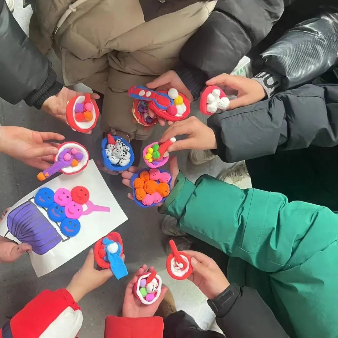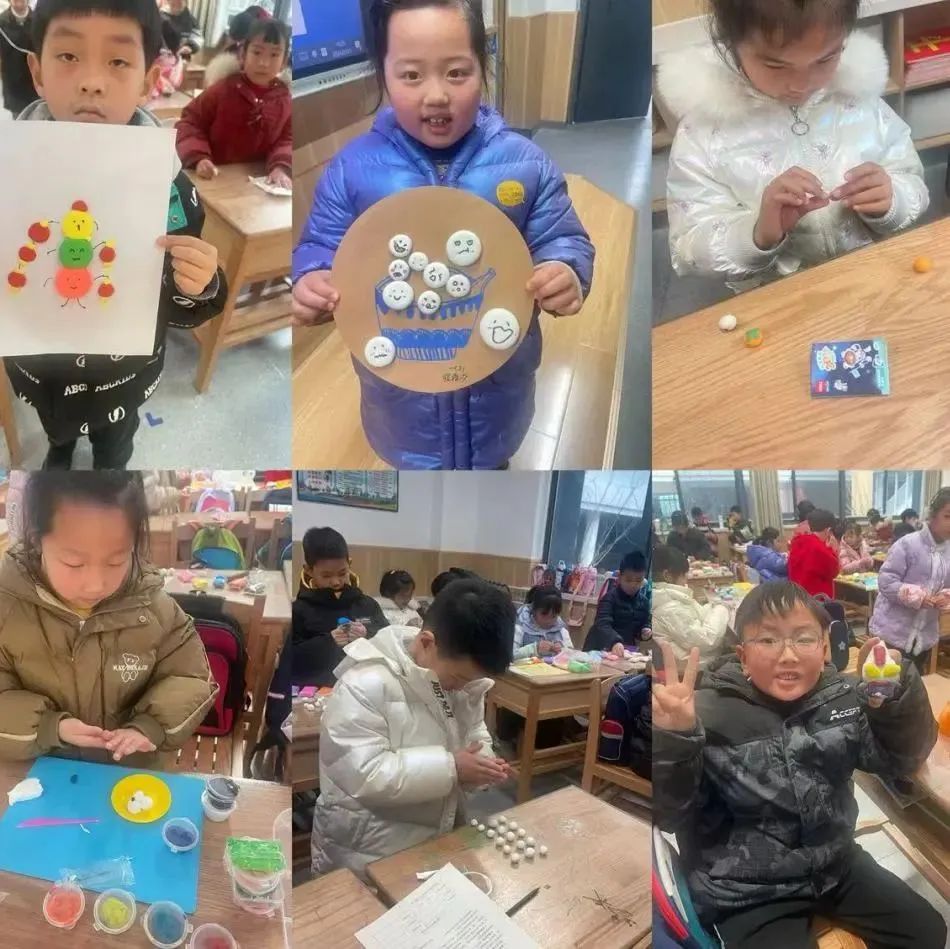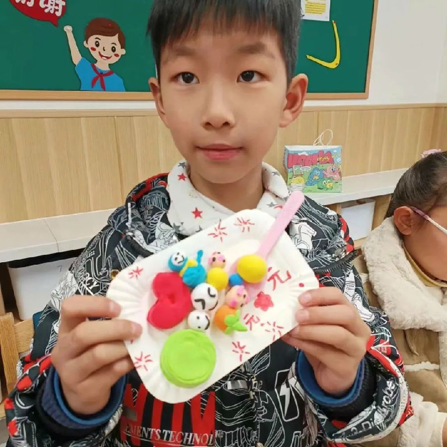 元宵佳节怎么能少了“美食”助兴,在老师简单讲解后,孩子们熟练地运用压、揉、搓、捏等方法制作着自己的“汤圆”,从中体验动手操作的乐趣,并在做好的“汤圆”上画上了自己喜欢的表情包,有可爱、生气、调皮...... 孩子们充分发挥自己的想象力,创作出“一碗碗”形态各异、色彩缤纷的“五彩汤圆”,为元宵佳节增添了一份别致的气息!