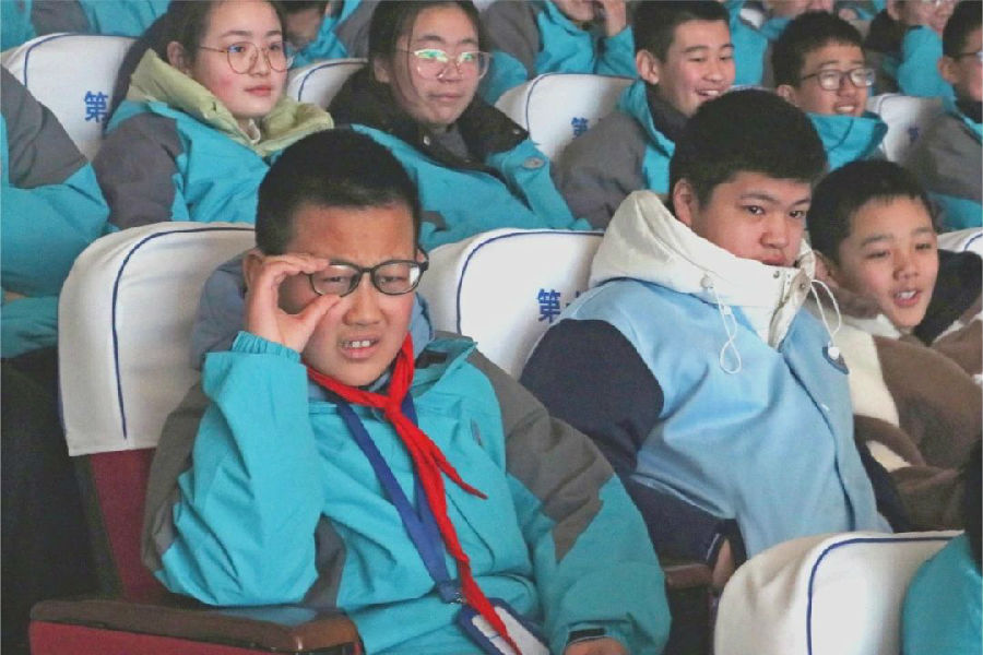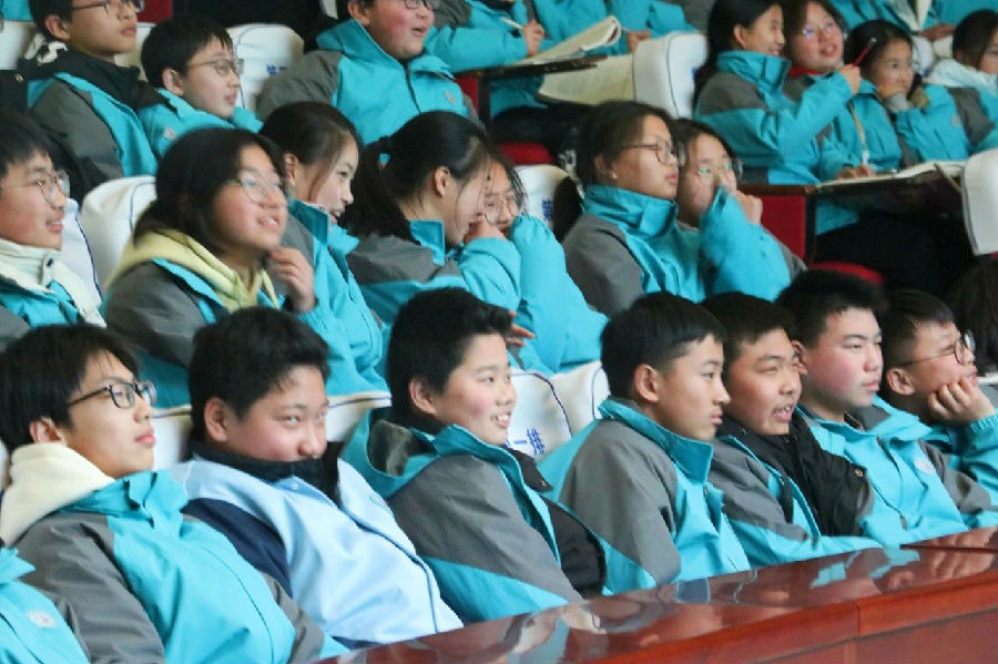 同学们的情绪紧随着剧情的发展波动,有欢笑,有感动,有不甘……那些书本上的人物被演员们生动的演绎出来,流利的语言,加上跌宕起伏的故事情节,深深地吸引了大家。一个多小时的演出,丝毫没有令人感到疲倦,演员们的精湛演绎,剧情的紧张起伏,令学生们为之倾服,全身心融入到剧情当中。