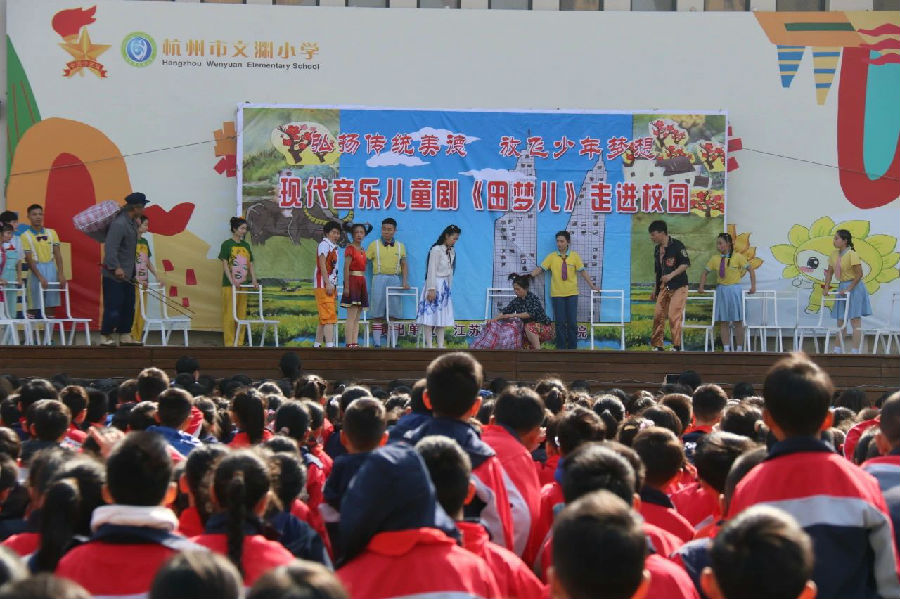 3月19日,大型现代音乐儿童剧《田梦儿》走进杭州市文渊小学,给全体师生带来了一场视听盛宴。