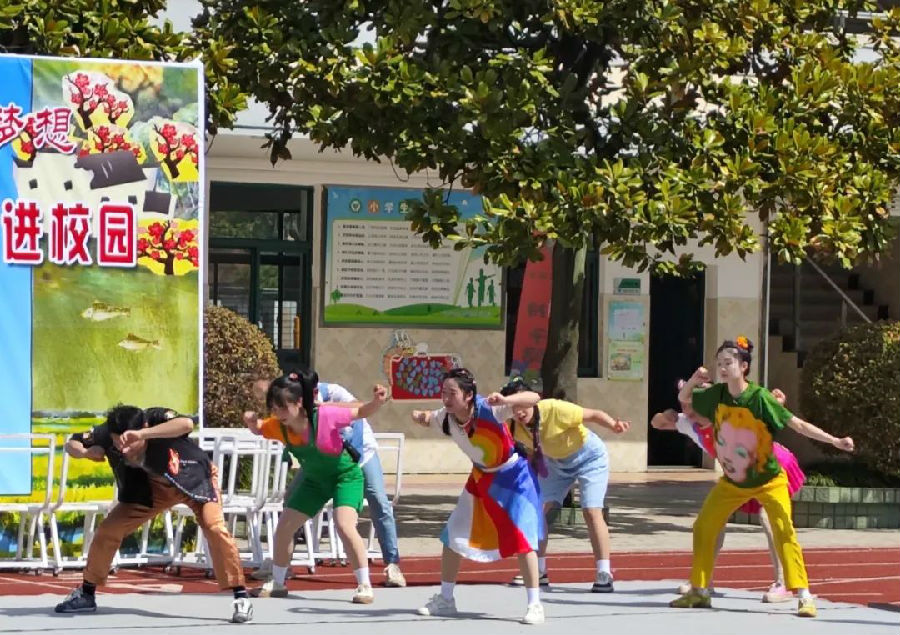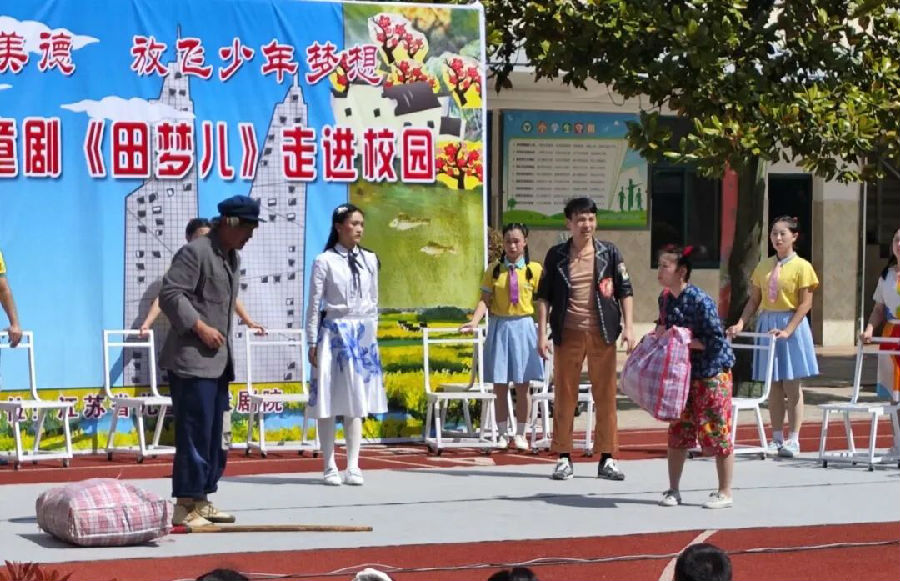 表演的最后阶段,每个班几乎都有人伤心落泪,讲的是什么呢?是田梦儿的爷爷失忆了,田梦儿也得知姐姐被滚落的石头砸到了身体而不幸去世的消息,同学们都想帮助她和爷爷过上好的生活。