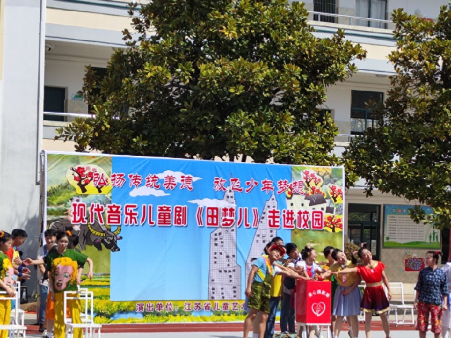 今天,晴空万里,全校的师生都像被阳光感染了似的,蓬勃向上。在这阳光明媚的日子里,江苏省儿童艺术剧院给我们带来了精彩的话剧——《田梦儿》。