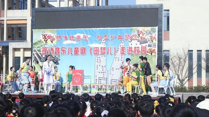 3月20日,杭海路小学的师生们齐聚操场,共同欣赏了一场由江苏省儿童艺术剧院带来的大型音乐儿童剧——《田梦儿》。生动的话剧吸引了众多师生的关注。