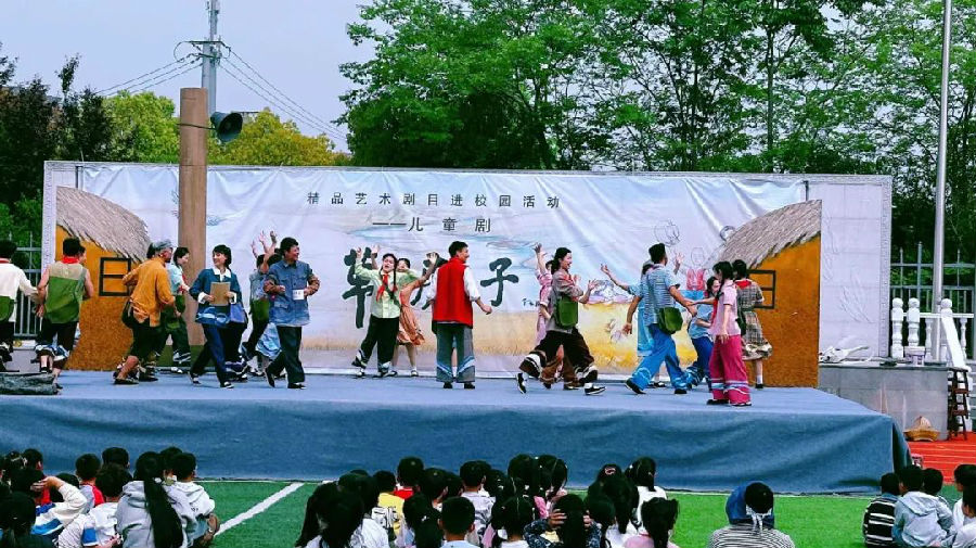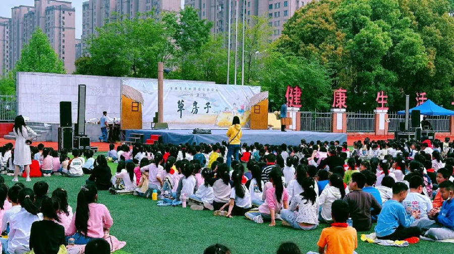 为丰富学生课后服务内容与形式,鼓励学生与经典近距离对话,4月16日伴随着优美的童声主题曲,儿童剧《草房子》走进南通市竹行小学,为学生们带来一场视觉盛宴。