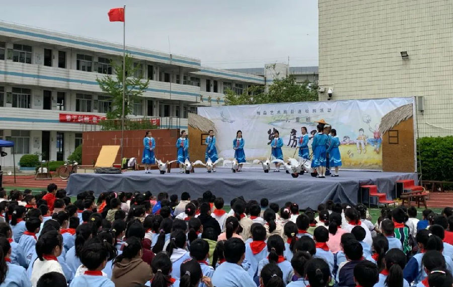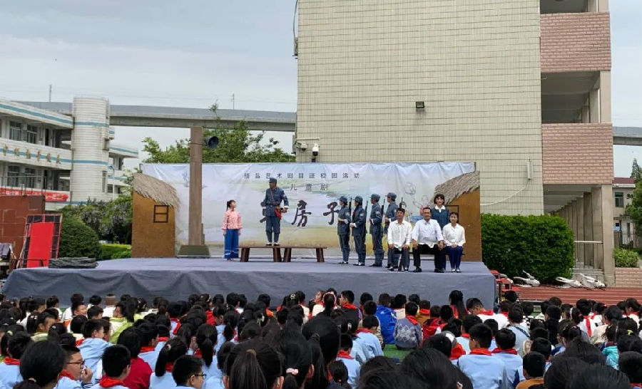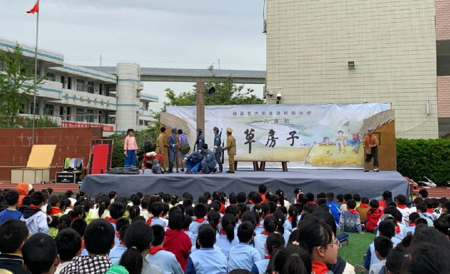 4月19日下午,风和日丽,鸟语花香。平东小学的同学们在老师的带领下排着整齐的队伍来到操场,观看江苏省儿童艺术剧院的艺术家们带来的儿童剧《草房子》,同学们个个激动不已,充满期待。