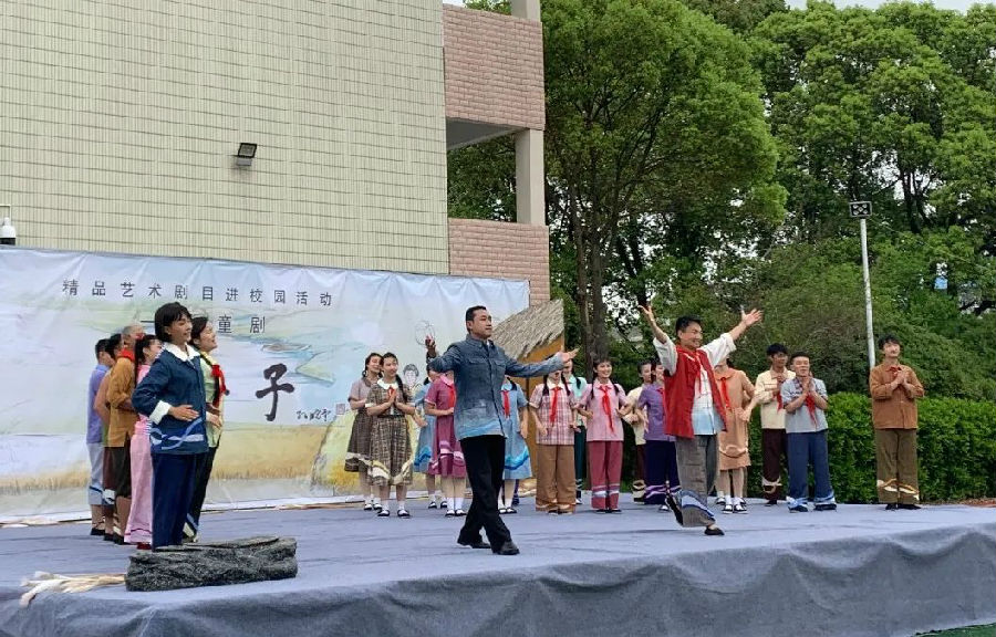 舞台的背景是被一片金色芦苇环绕的油麻地,演员们在舞台上生动地展现了一个又一个看似寻常但又催人泪下、感动人心的故事,同学们聚精会神地观看,不由自主地进入那个充满友谊与爱、欢笑与悲伤的年代。