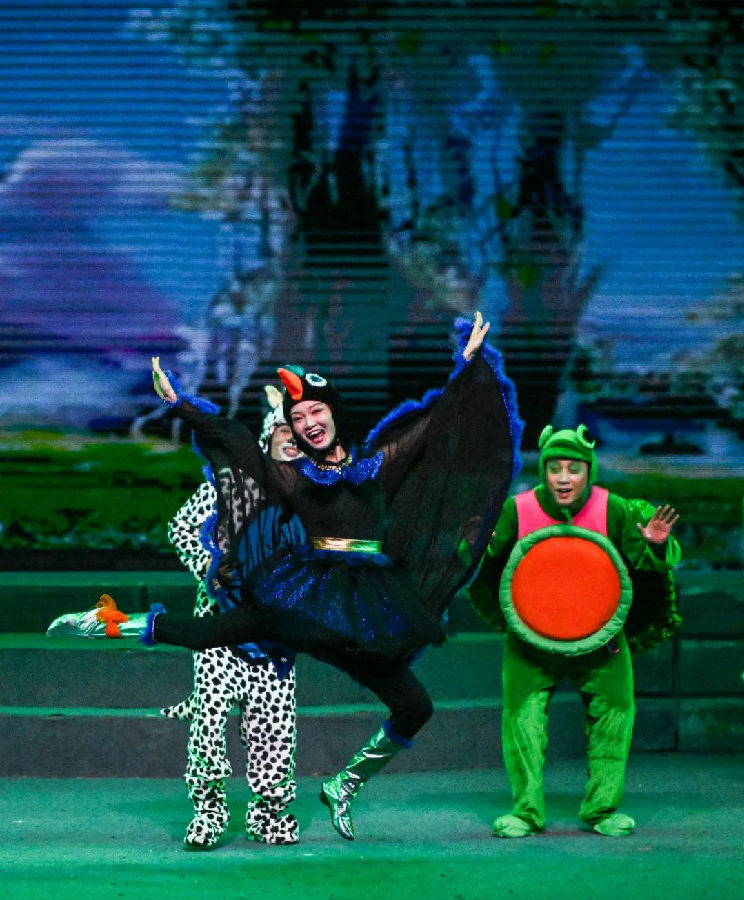 舞台上,演员们用精湛的演技和饱满的情感,结合现代多媒体舞台技术,给台下小观众带来了高质量的演出和沉浸式的视听体验。现场气氛热烈,掌声不断,叫好声不停,让走进剧场的大朋友、小朋友们过足戏瘾的同时,也经历了一次难忘的童话之旅。