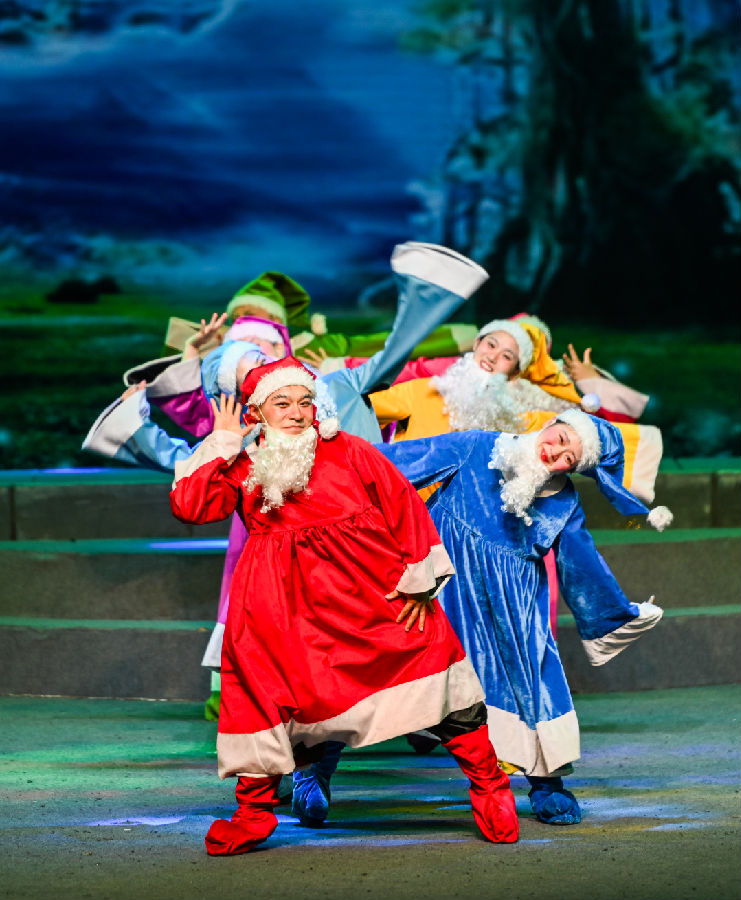 《白雪公主》互动元素拉满,亮点纷呈。白雪公主、王子、小矮人、王后等童话明星悉数登场。七个小矮人、小鸟、小松鼠等可爱的形象活灵活现。小矮人与王后对决的时候,台下大小朋友不断高呼“加油,打败她”;当王子唤醒白雪公主时,台下立即发出“善良的呼唤”帮助王子一起唤醒白雪公主。演出过程中,当丛林小动物们和七个小矮人出现在观众席中,全场热血沸腾,小朋友们一起跳舞、欢乐互动,沉浸在童话爱的海洋之中。
