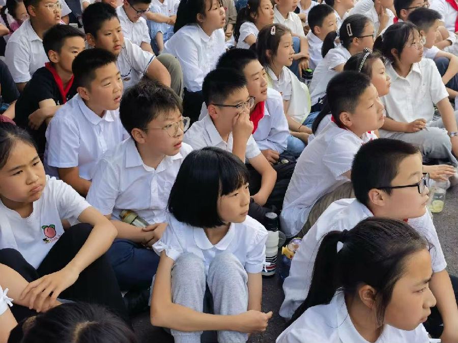 《青铜葵花》讲述了一个感人至深的故事。在风雨飘摇的岁月里,一场洪水让城里女孩葵花成了孤儿,贫困善良的哑巴青铜及家人收养了葵花。一家人历经苦难,他们彼此依靠,相互温暖,共同成长。青铜虽然因一场事故而失语,但他聪明而且心地善良。他与葵花一起长大,一起战胜生活的苦难。当命运又要让葵花回到城市时,青铜心如刀绞,他望着芦荡的尽头,竟然开口说话了,他高喊一声:“葵花!”那声嘶力竭的呐喊震动了现场所有孩子的心灵。在场的师生们看得入情入境,从中感悟浓浓的亲情及面对苦难时努力向上的力量。