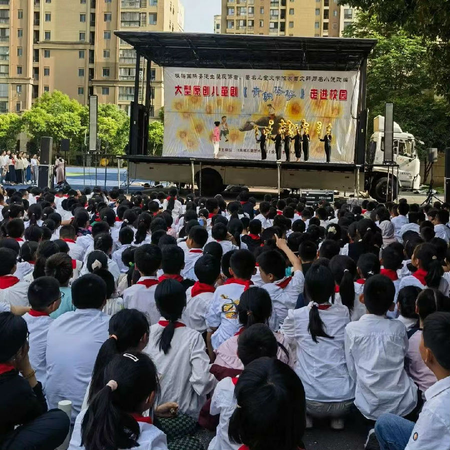 “阳光照亮油麻地,照亮了眼泪,照亮了欢喜。”苦难中的美丽,挫折中的成长,更让人记忆深刻。2024年5月29日,由江苏省委宣传部、江苏省文明办出品的原创儿童剧《青铜葵花》全省巡演走进香槟湖小学,常州市金坛华罗庚艺术团的演员们为香槟娃带来了珍贵的“六一”儿童节礼物。