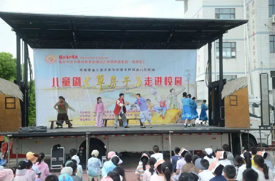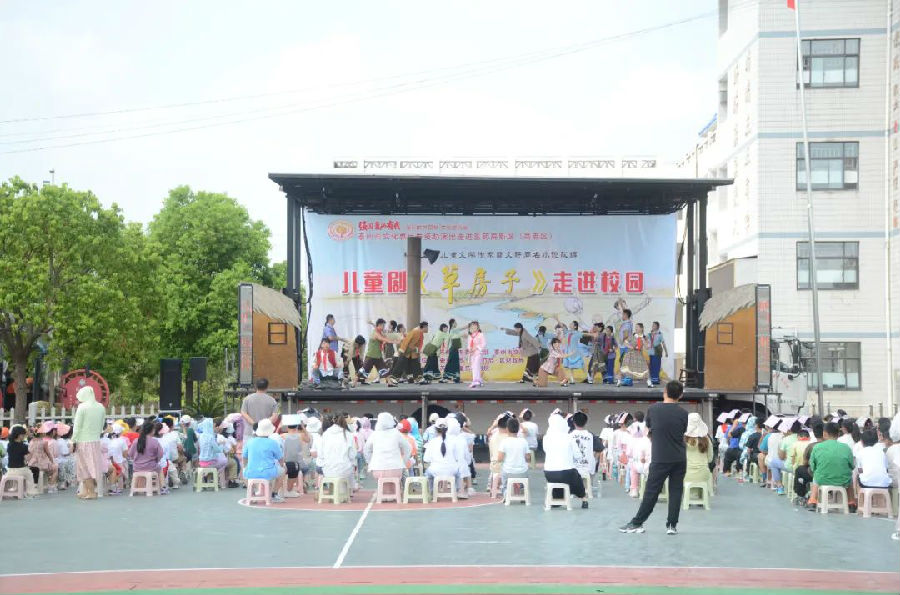 “草房子故事多,有你也有我……”9月6日上午,由区宣传和统战部、区教育局主办,胡庄镇人民政府协办的“‘文化惠民券’精品剧目下基层演出活动”在汪群小学举行,江苏省儿童艺术剧院(华罗庚艺术团)为汪群小学师生带来儿童剧《草房子》。