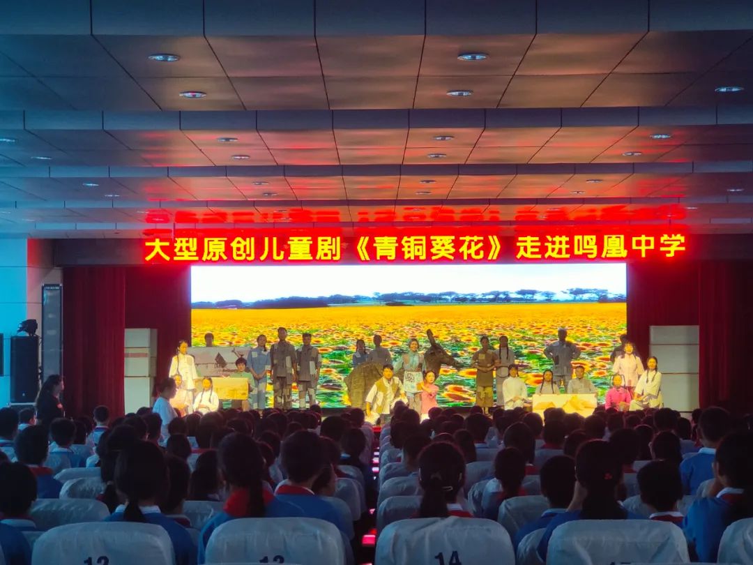 为丰富少先队员的校园文化生活,感受儿童戏剧艺术的独特魅力,2024年9月27日,伴随着优美的童声主题曲,优秀儿童剧《青铜葵花》在鸣凰中学拉开了序幕,为鸣凰中学的少先队员们带来一场酣畅淋漓的视听盛宴。