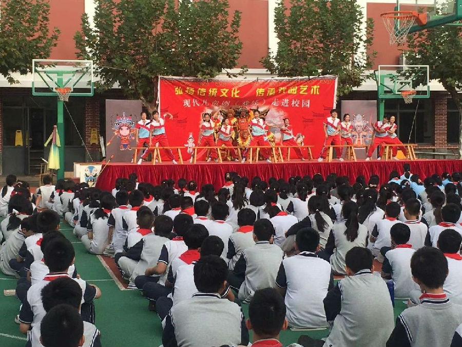 舞台上演员们精彩的表演深深吸引了台下的同学们,让大家对戏曲不再陌生,对国粹有了兴趣。一座戏台是两个孩子梦想的起点;一个京戏形象是我们励志而立的精神寄托;一部戏曲也不仅仅是艺术文化,更是一个时期一个地区人文精神风貌的体现。是人民对美好生活的愿望。