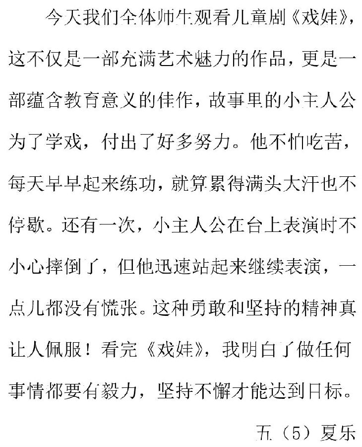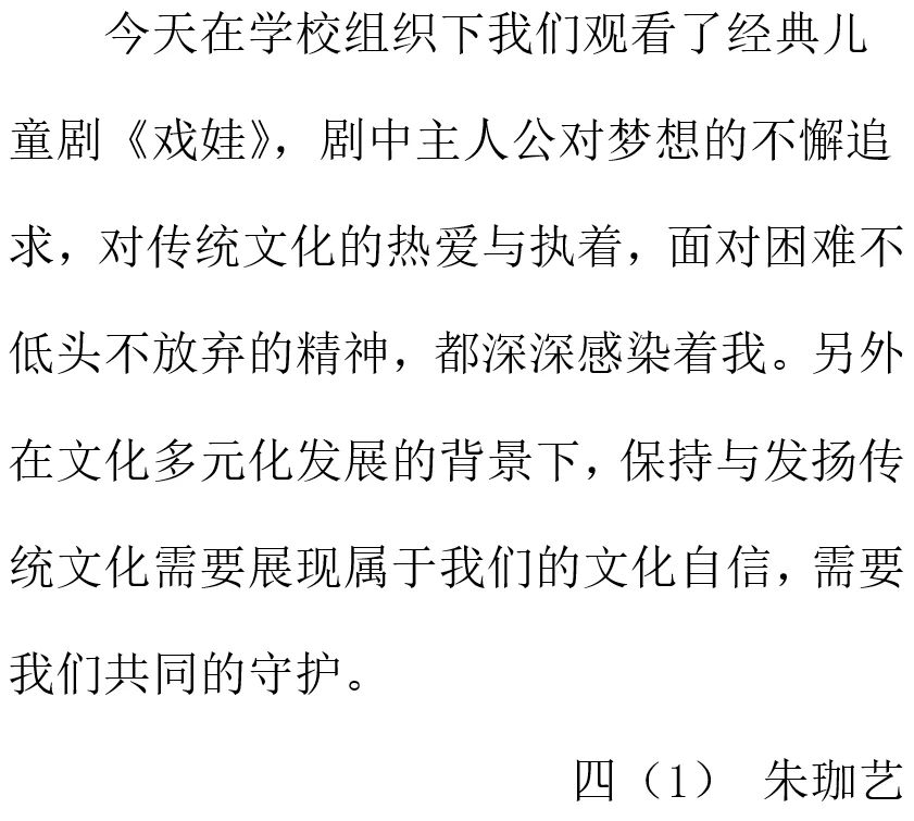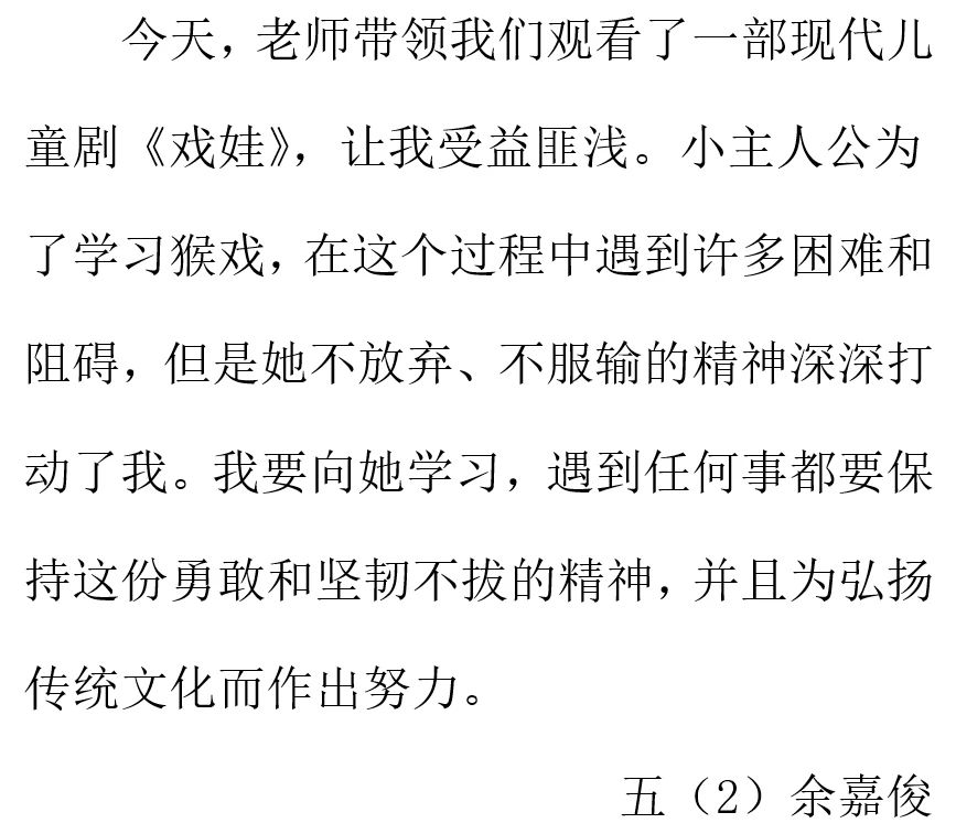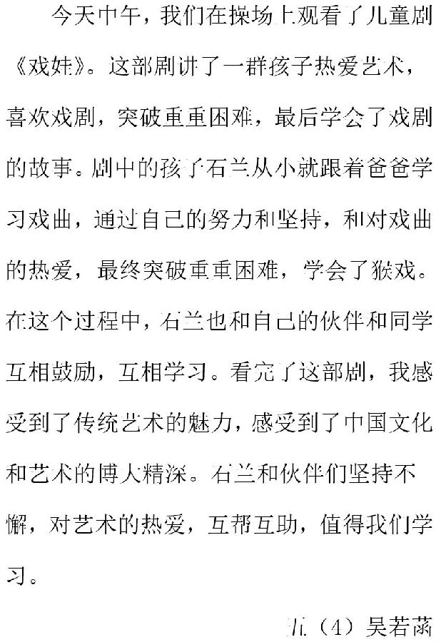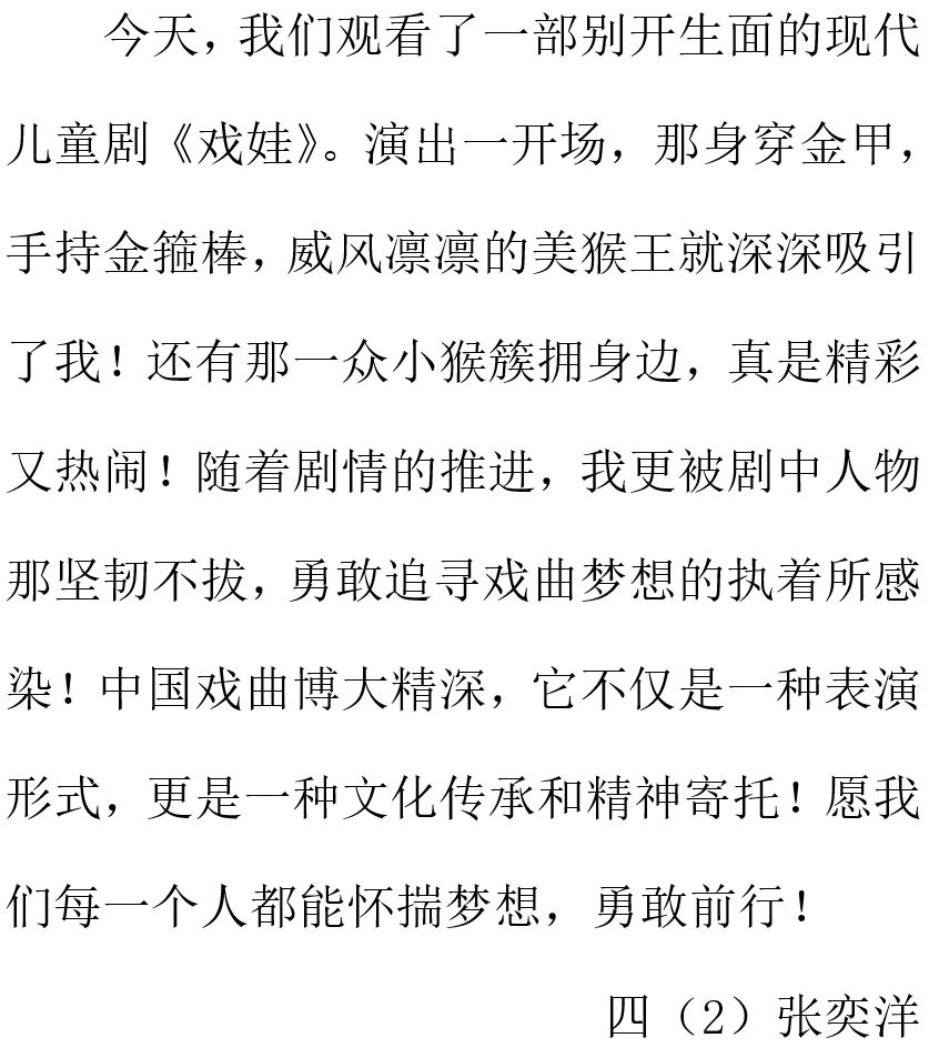 看完表演,孩子们感慨万千,纷纷写下自己的感想……