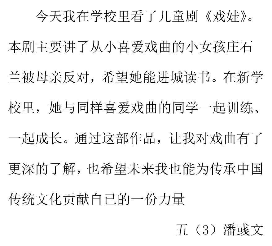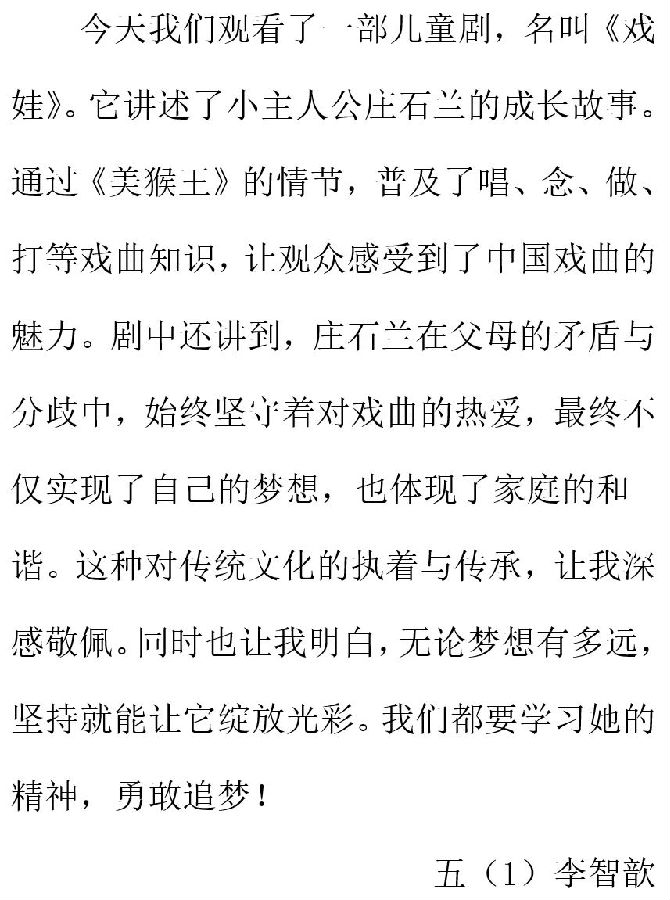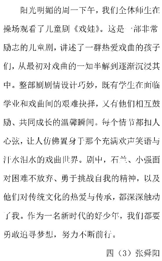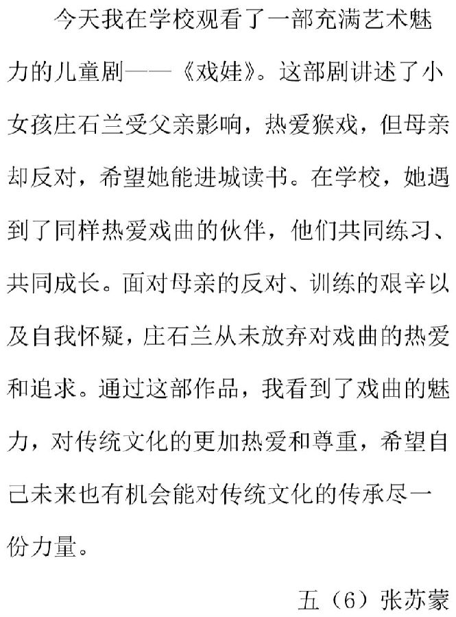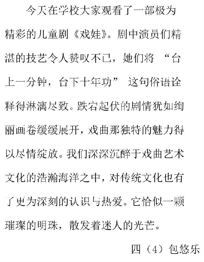 看完表演,孩子们感慨万千,纷纷写下自己的感想……