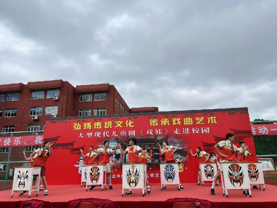 今天操场上真热闹呀!临时搭建的戏台,演员们精致生动的妆容,悠扬的戏曲还有舞动的红缨枪和水袖,我和同学们一起荣幸地观看了《戏娃》这部儿童戏剧。