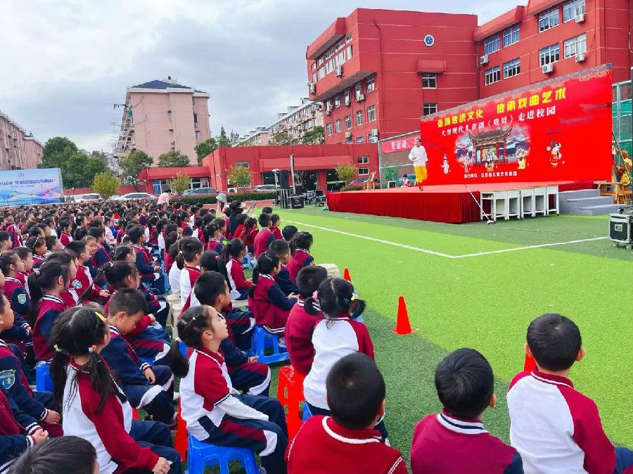 为弘扬中华优秀传统文化,传承红色经典血脉,对学生开展爱国主义教育,2024年10月30日中午,进才实验小学(由由校区)全校师生共同观看了红色话剧——《戏娃》。