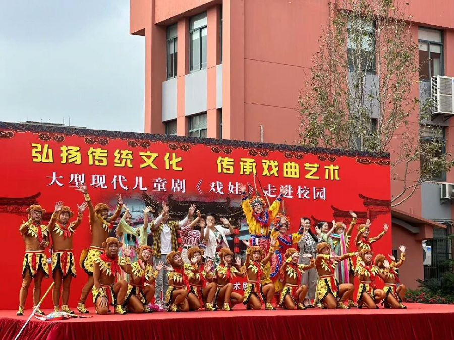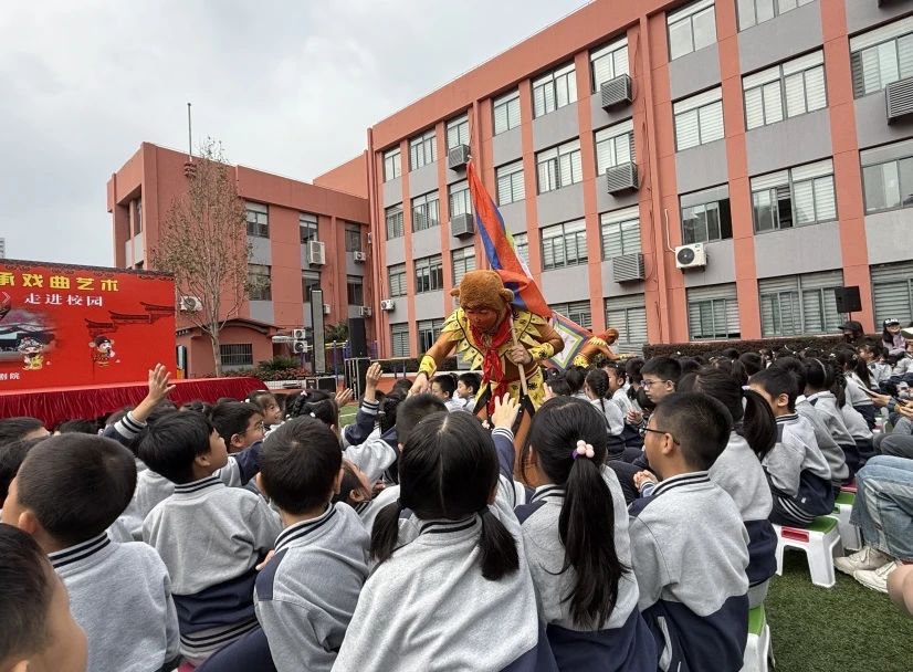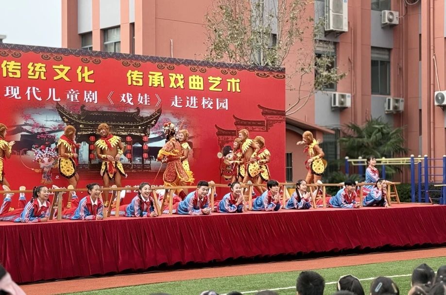 人们常言“台上片刻光鲜,台下十年艰辛。”舞台上的演员们默契无间,情感饱满的演出,无疑展现了他们深厚的艺术底蕴。那水袖轻盈飘逸,仿佛潺潺溪水在空中翩翩起舞;而彩旗则灵动自如,宛如水中游鱼在空中翩跹。这些高超的表演技巧和扣人心弦的剧情,紧紧抓住了每一位小观众的心。孩子们时而静气屏息,时而开怀大笑,时而皱眉深思,时而感动落泪,完全沉浸在戏曲艺术的深厚文化之中。