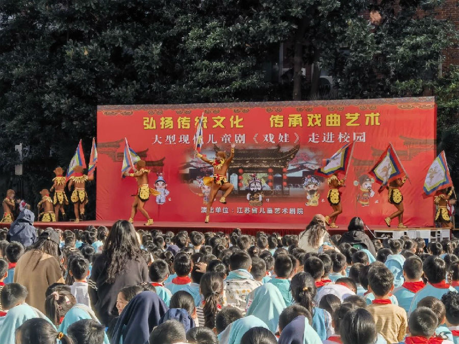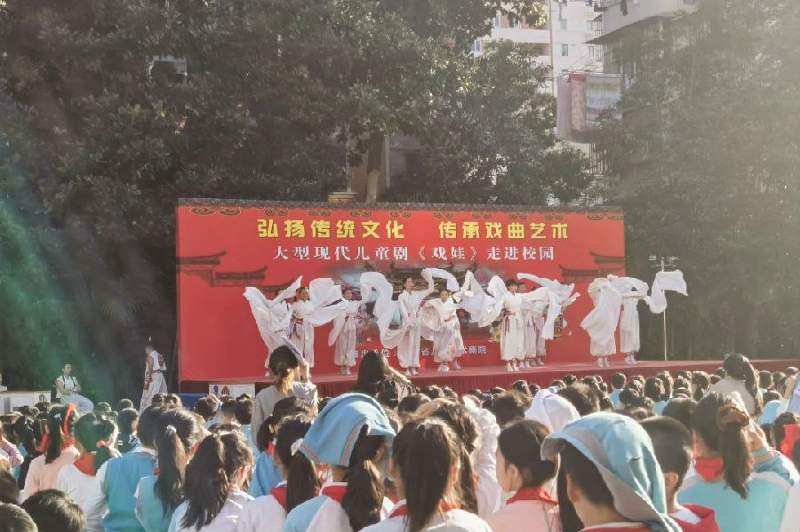 在这个金秋送爽的美好时节,明珠小学A校区的校园里迎来了一场别开生面的文化盛宴。为传承戏曲文化,拓宽同学们的文艺视野,提升艺术鉴赏能力,学校特别邀请了江苏省儿童艺术剧院走进校园,为明珠的孩子们献上了一场精彩绝伦的儿童剧《戏娃》。