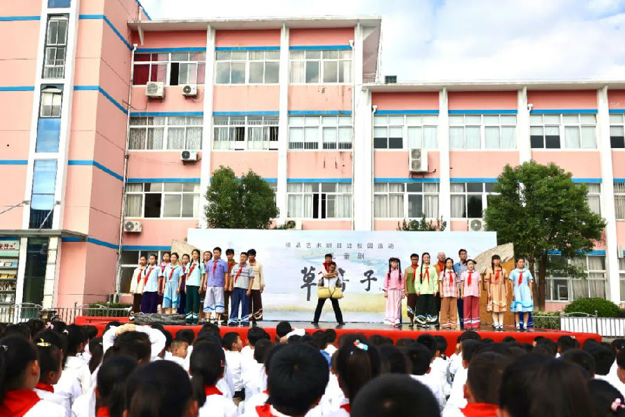 为丰富校园文化生活,感受儿童戏剧艺术的独特魅力,无锡市后宅中心小学把精品艺术剧目进校园活动作为学校美育浸润行动的尝试,满足学生不断提升的精神文化需求。2024年10月25日,伴随着优美的童声主题曲,优秀儿童剧《草房子》在学校开了序幕,为全体师生带来了一场酣畅淋漓的视听盛宴。