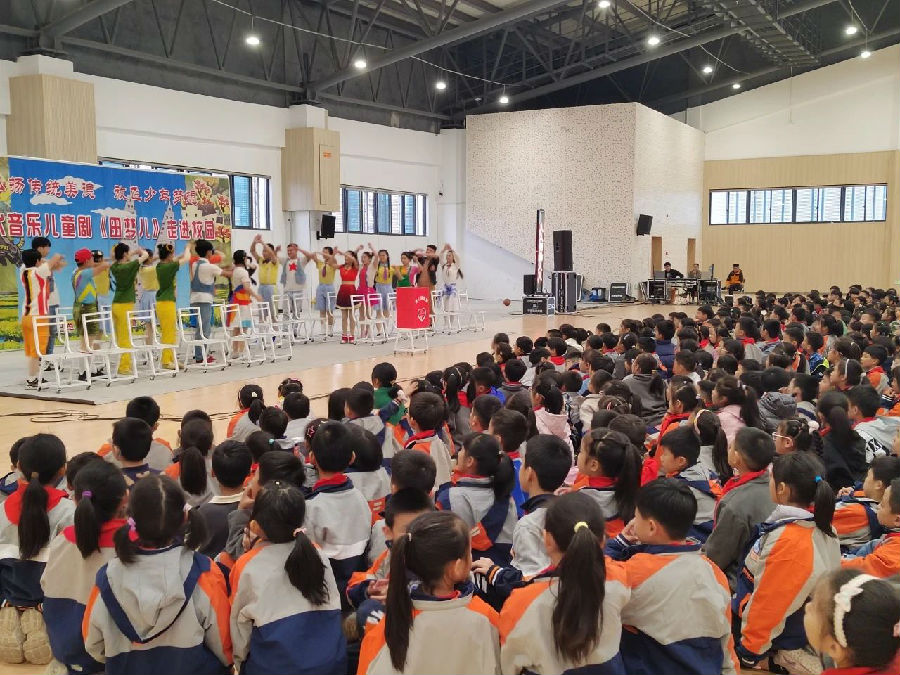 在2024年11月19日这个美好的日子里,杭州市余杭区禹航实验学校迎来了一场精彩的演出。江苏省儿童艺术剧院带来的音乐儿童剧《田梦儿》,为一至五年级同学呈现了一个动人故事。