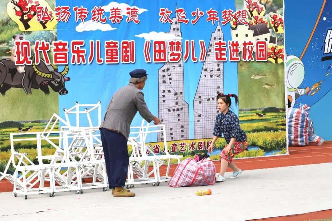 走进江苏省美德少年孩子的真实事迹改编而成儿童音乐剧《田梦儿》,感受中华文明的品德魅力。它讲述了年迈的爷爷捡废品供田梦儿进城求学的成长经历。全剧以“调换座位、班级捐款、网吧围堵、爷爷失踪”等故事层层铺开、环环相扣,情节跌宕起伏。全剧既充溢着殷殷的亲情和浓浓的友情,又反映出当代青少年生动的生命成长和追寻梦想之路。