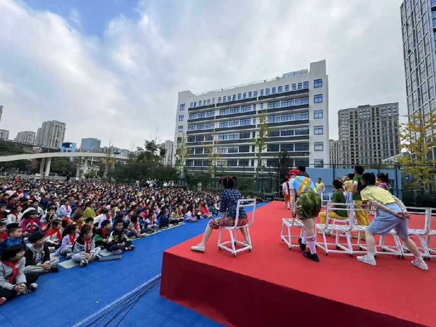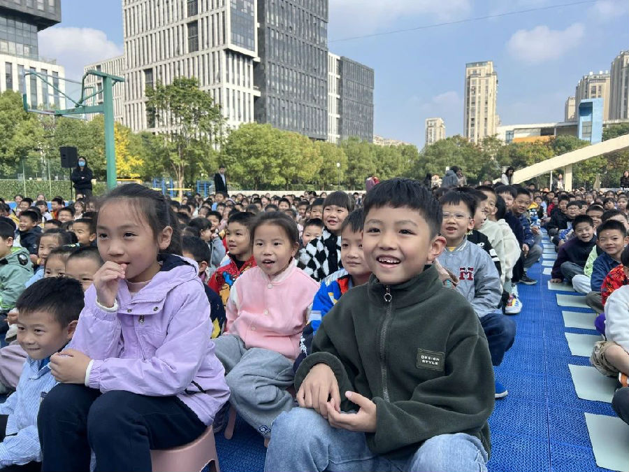 树树皆秋色,暖阳金秋下,杭州市星澜小学举办了一场特殊的文化盛宴。11月21日的下午,学校全体师生齐聚操场,共同欣赏了一部大型音乐儿童剧——《田梦儿》。这一活动旨在弘扬中华传统美德,让学生感受艺术的魅力,提升艺术修养。