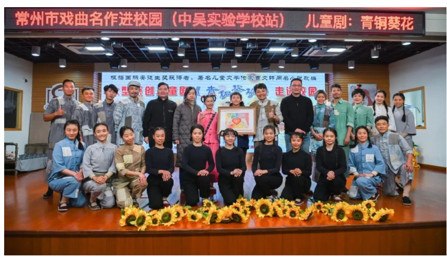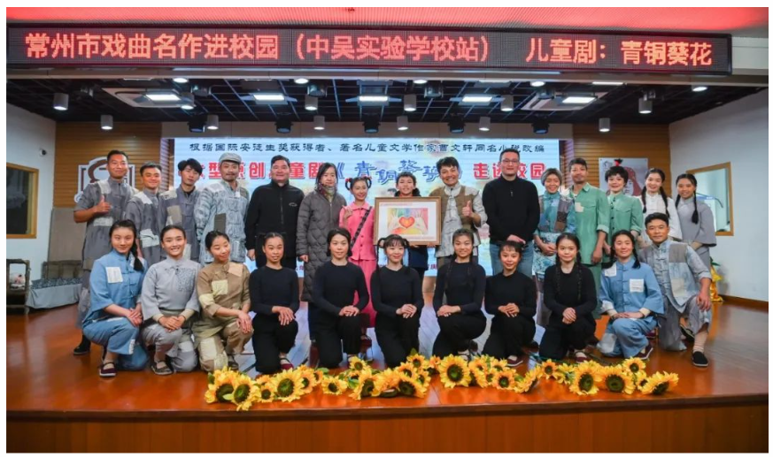 12月18日,常州市戏曲名作进校园活动在常州市中吴实验学校举行。江苏省儿童艺术剧院、金坛华罗庚艺术团带着儿童剧《青铜葵花》走进学校报告厅。全校师生齐聚一堂,共同观赏了这部感人至深的剧目。
