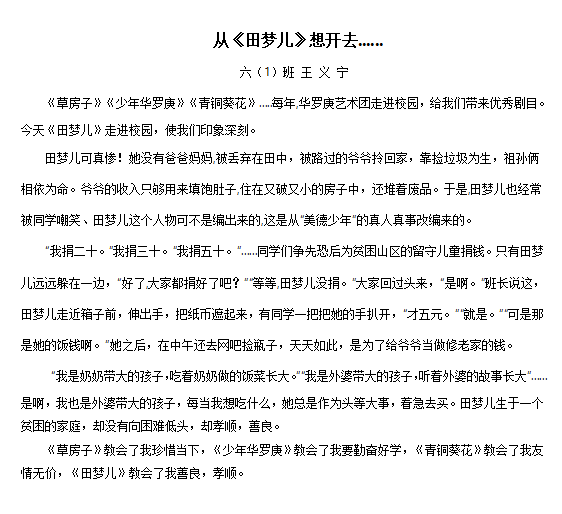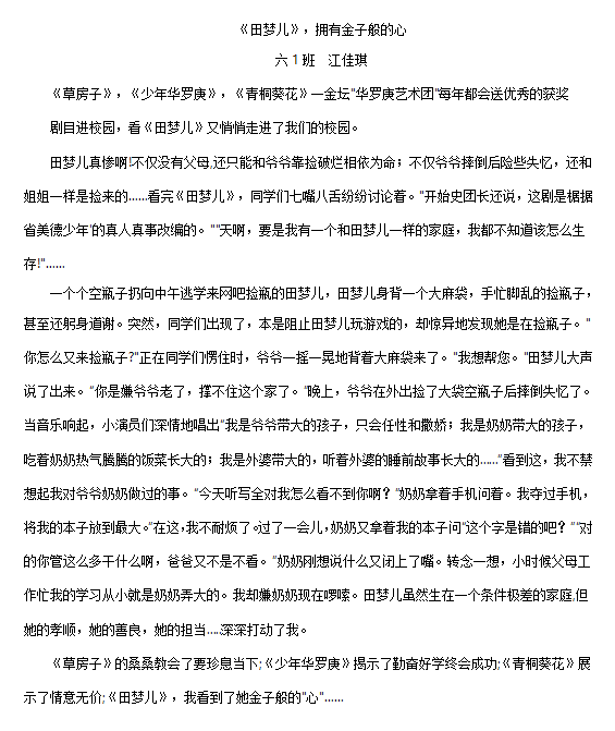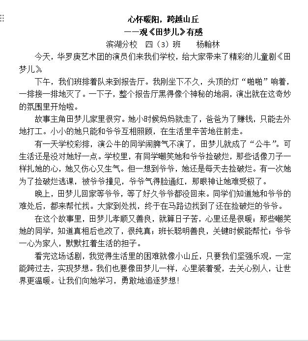 此次观看儿童剧活动,极大地丰富了同学们的课余生活。更重要的是,同学们从田梦儿的身上汲取到了坚韧不拔、积极向上的精神力量,这将成为他们成长道路上的宝贵财富。学校未来还会精心策划、组织更多类似的活动,让同学们在艺术的滋养下,如茁壮成长的树苗,向着阳光,不断向上。